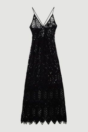 This captivating Karen Millen maxi dress embodies effortless beach sophistication. The fluid silhouette drapes, whilst the plunging neckline and cross-back strappy detail create a flattering, feminine look.