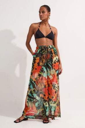 Beach Tropical Georgette Wide Leg Woven Trouser.