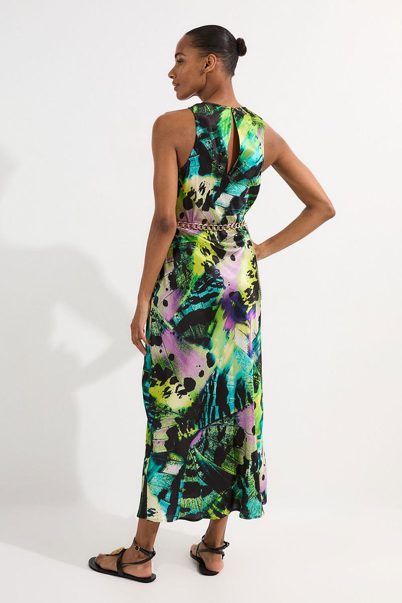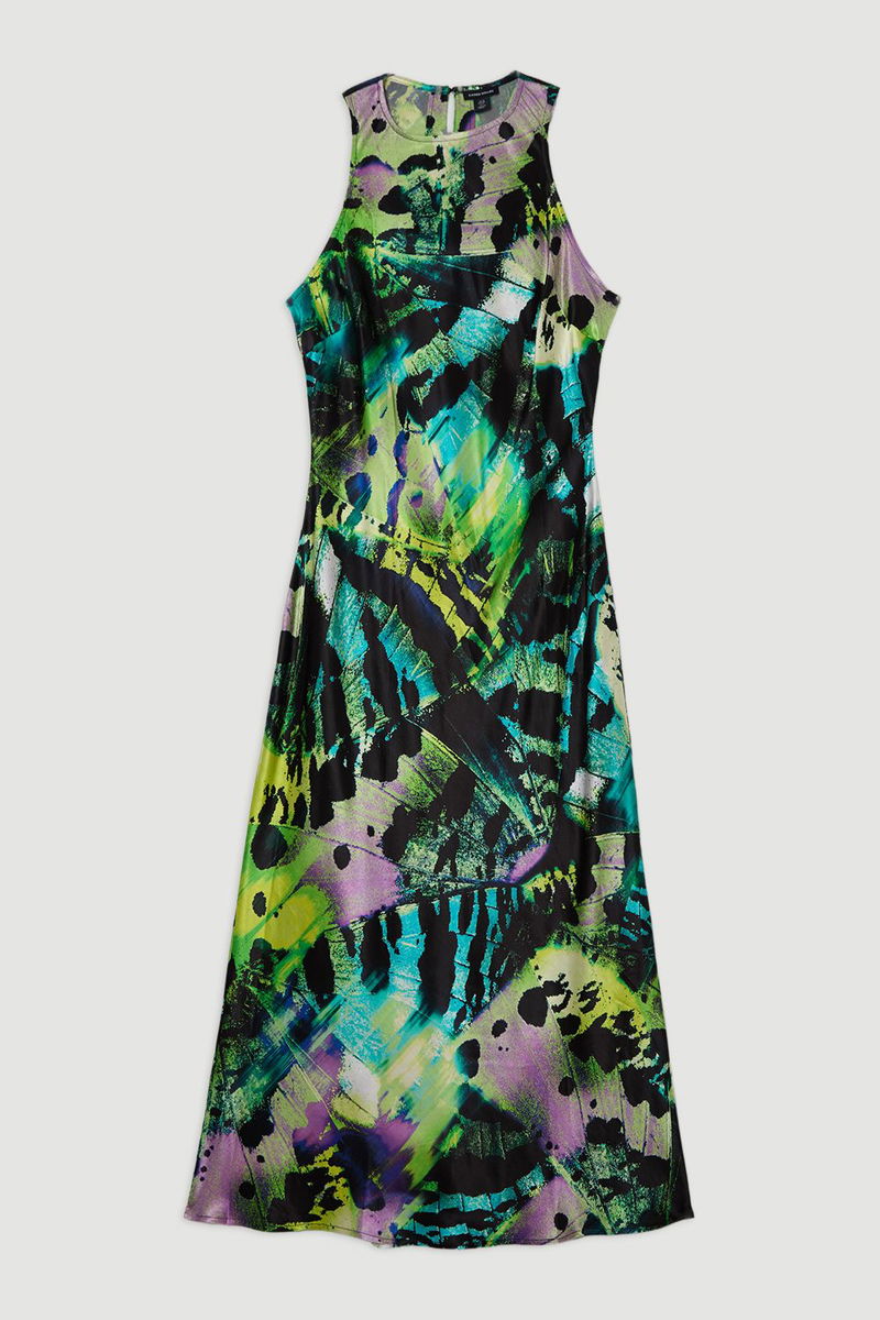 Butterfly Viscose Satin Maxi Dress