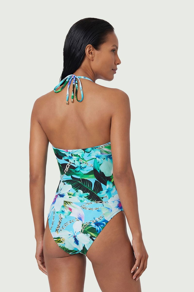 Chain Print Metal Trim Detail Cut Out Swimsuit