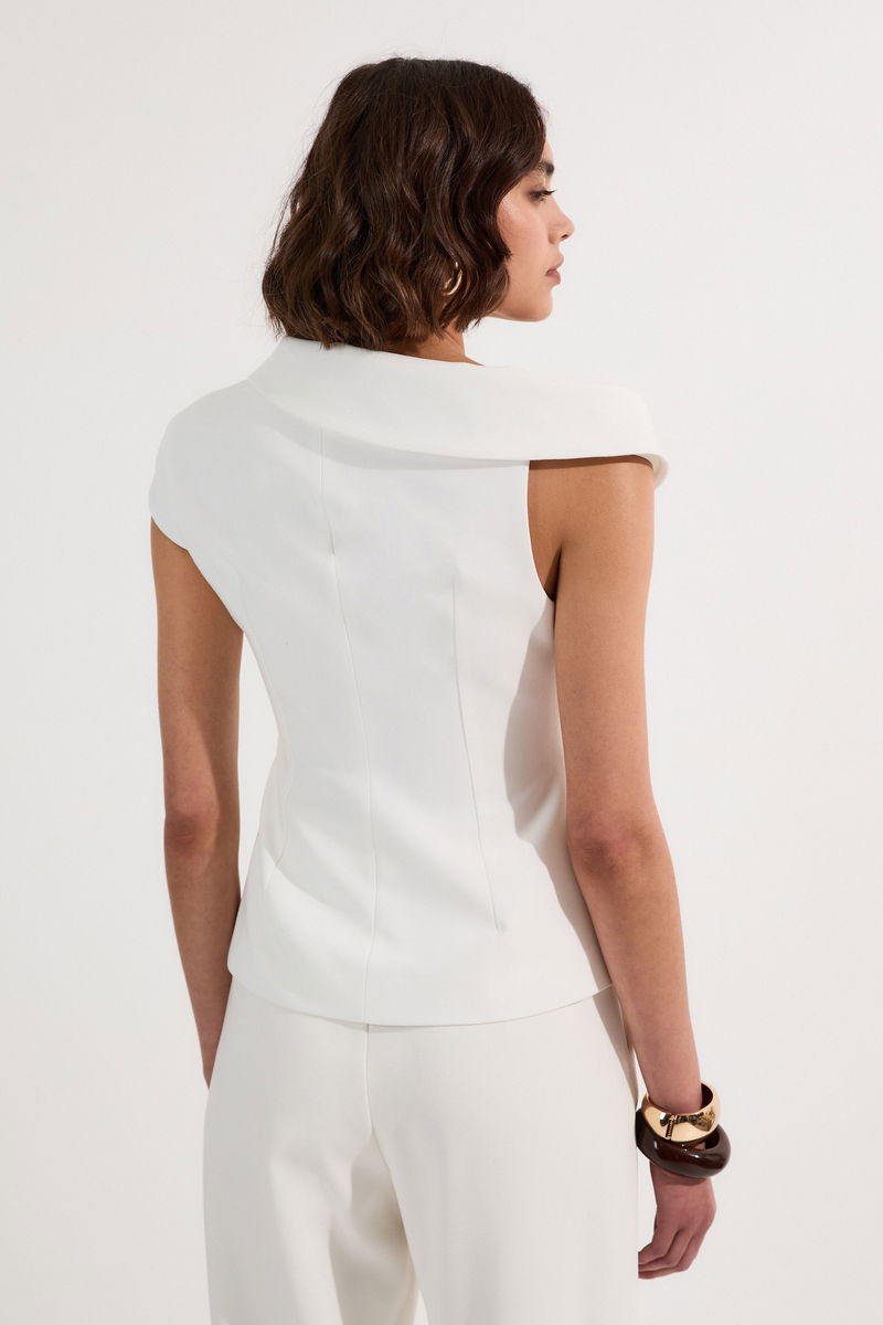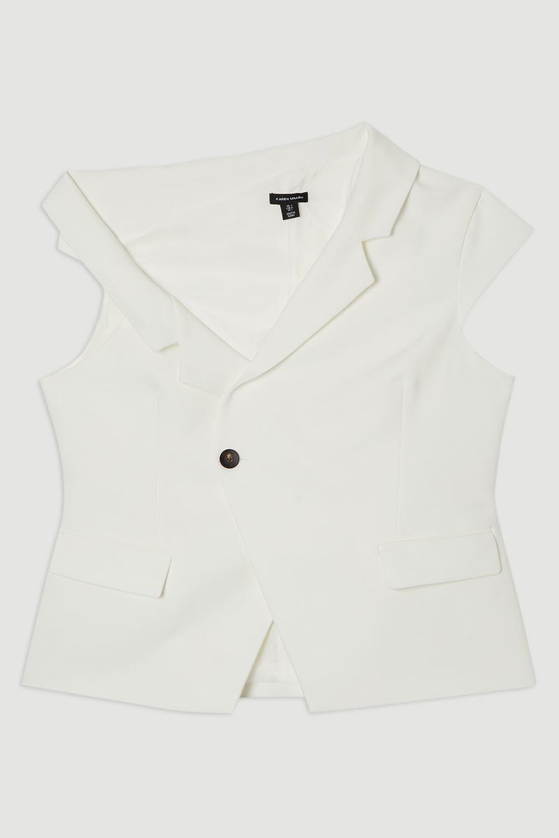 Clean Tailored Asymmetric Collar Belted Tailored Top