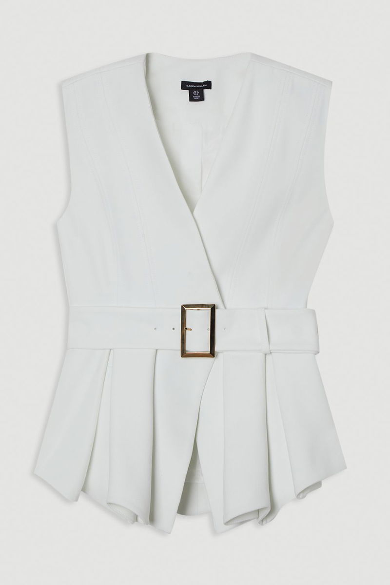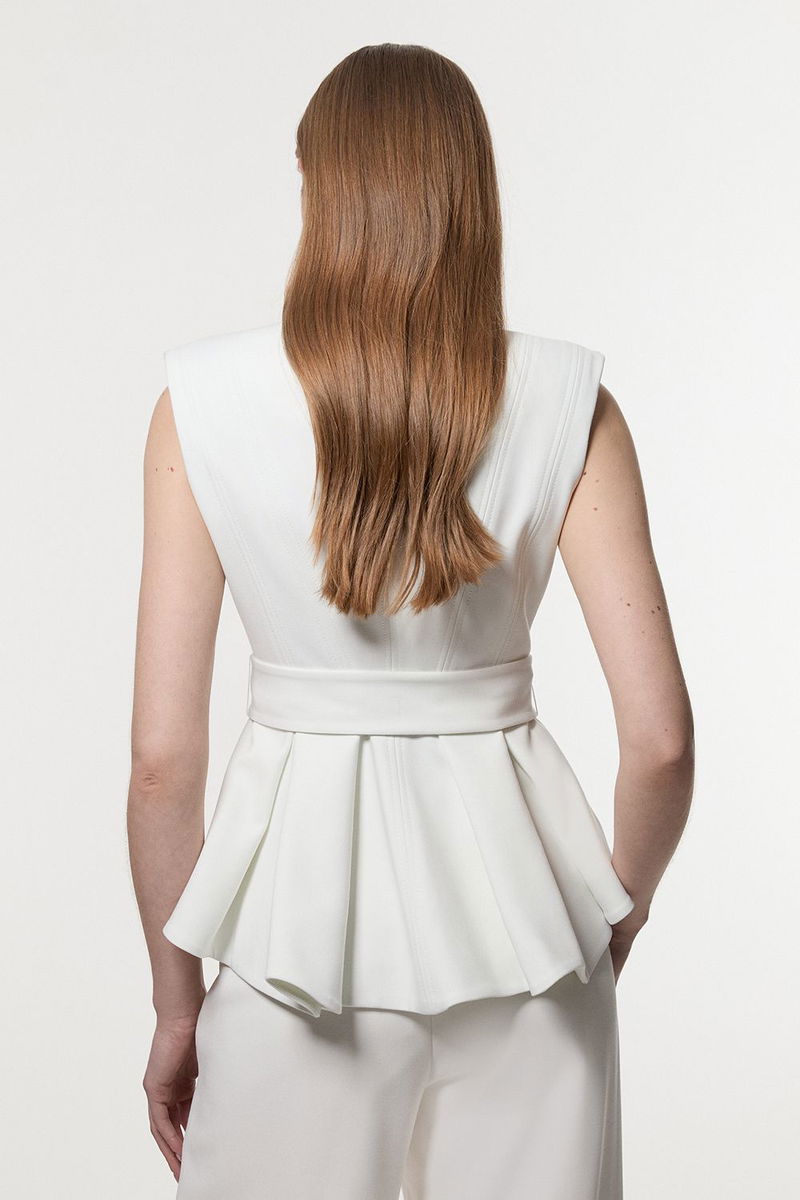 Compact Stretch Belted Peplum Sleeveless Tailored Jacket