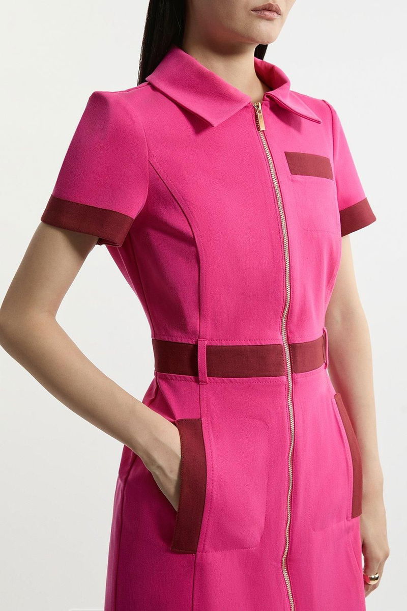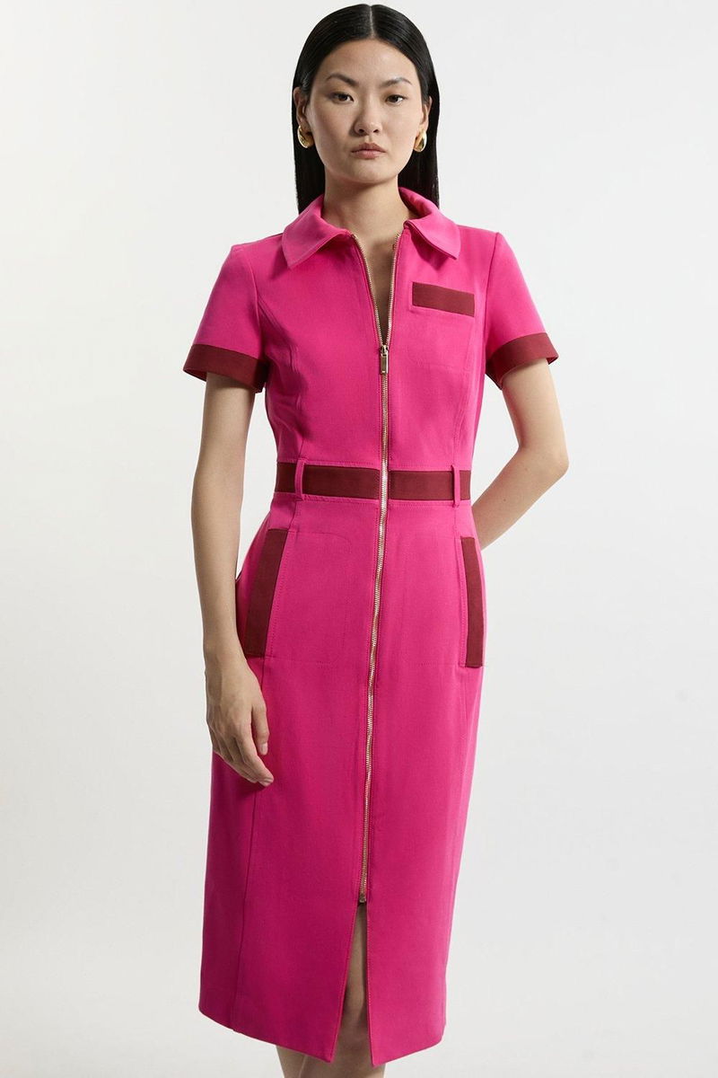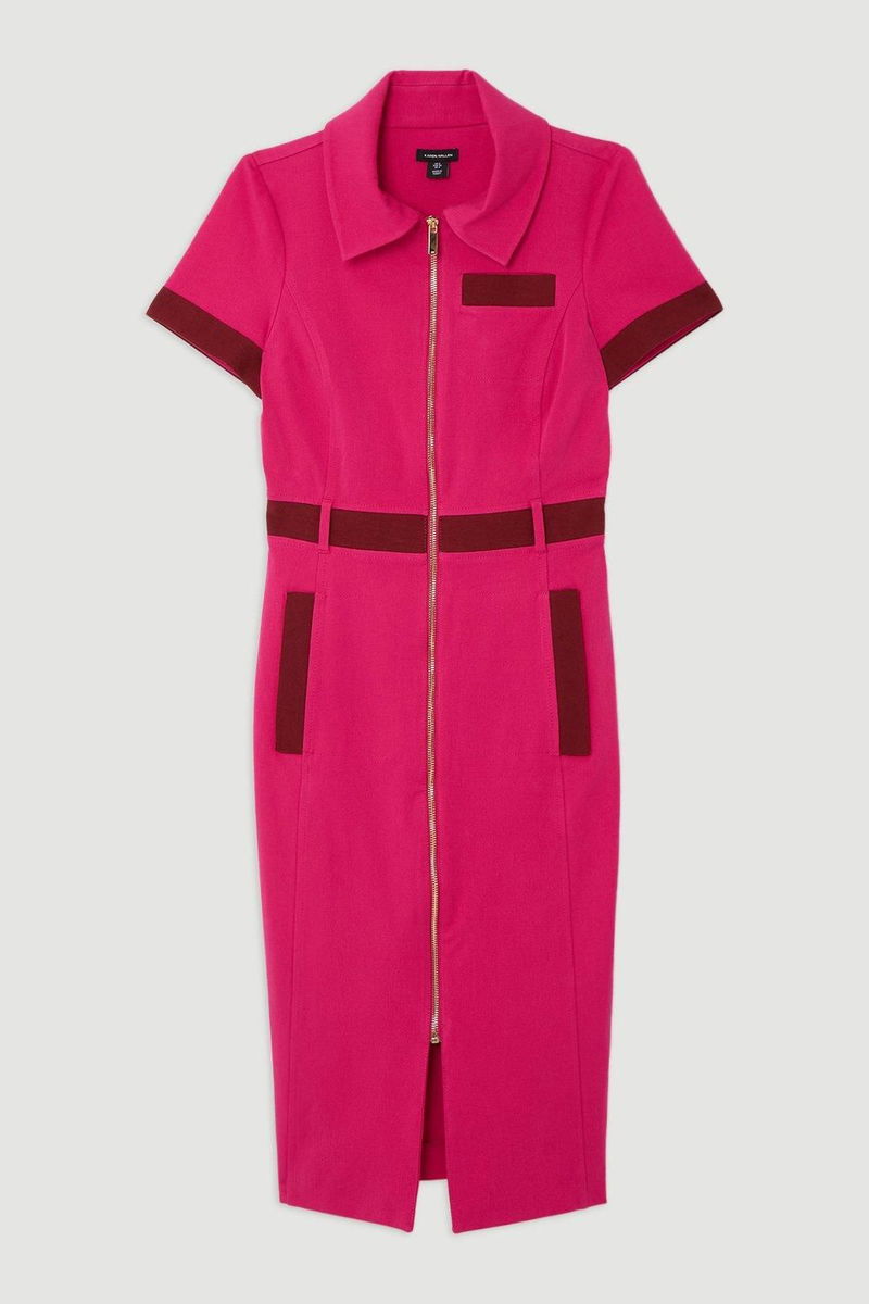 Compact Stretch Colourblock Grosgrain Zip Tailored Midi Dress