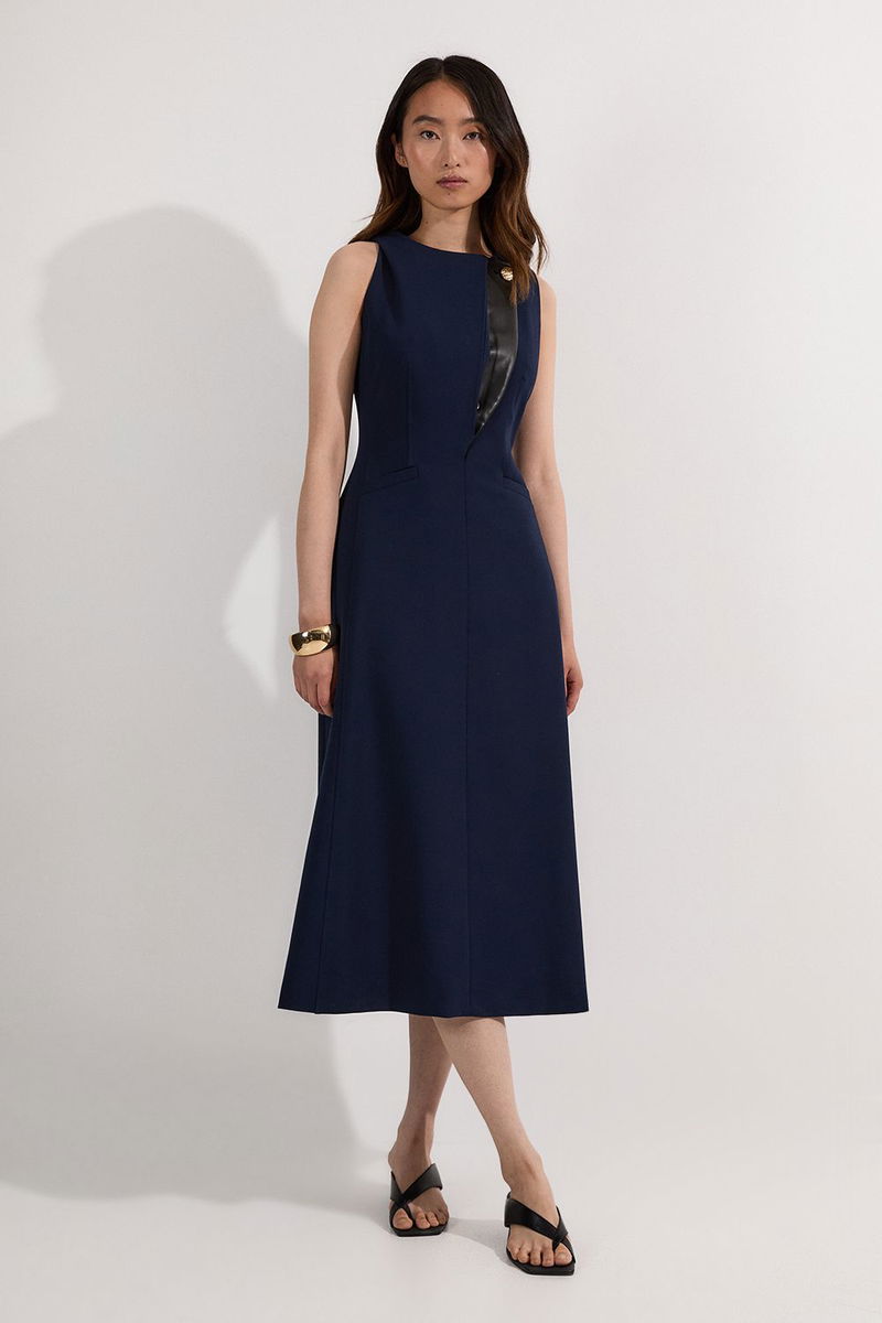 Compact Stretch Contrast Tipped Full Skirted Maxi Dress