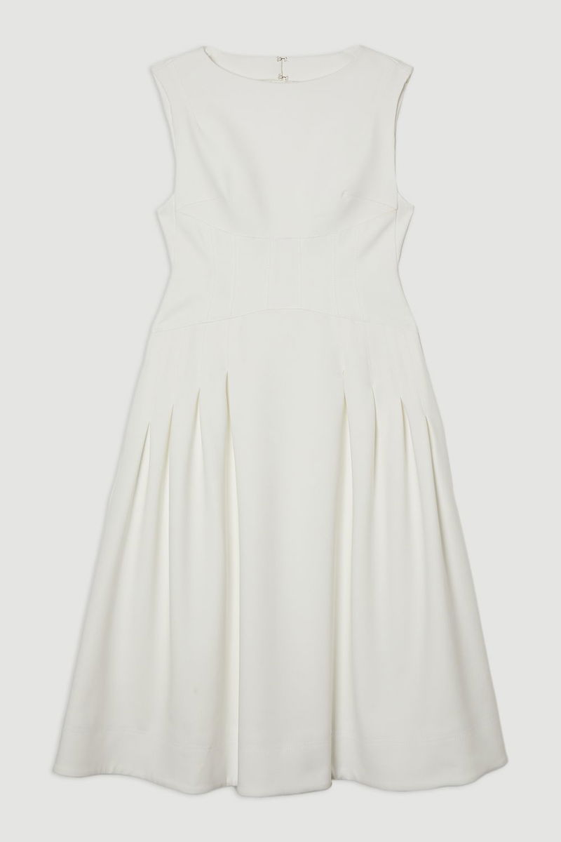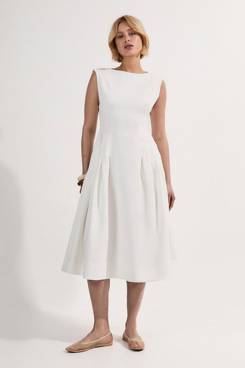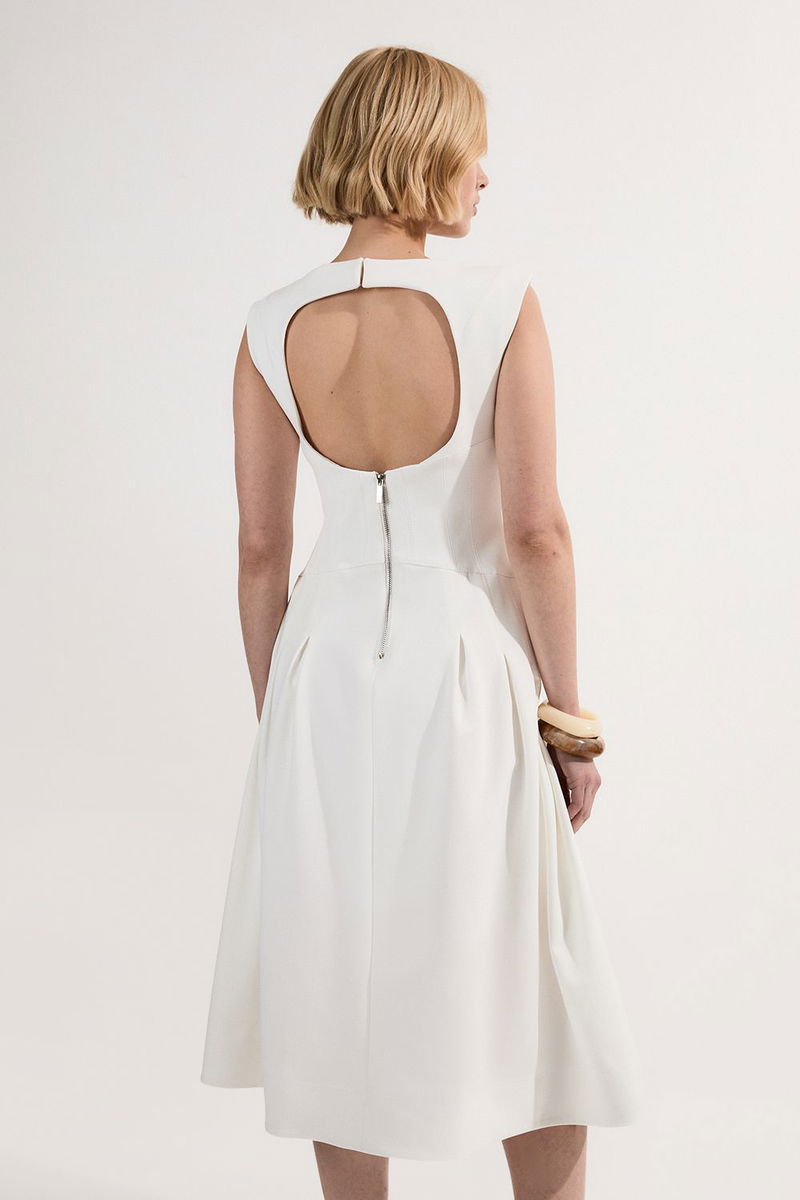 Compact Stretch Open Back Full Skirted Tailored Midi Dress