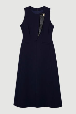 Compact Stretch Stab Stitch Square Neck Tailored Pencil Maxi Dress