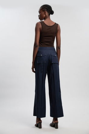 Contrast Stripe Twill Woven Wide Leg Trouser