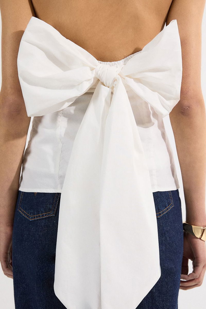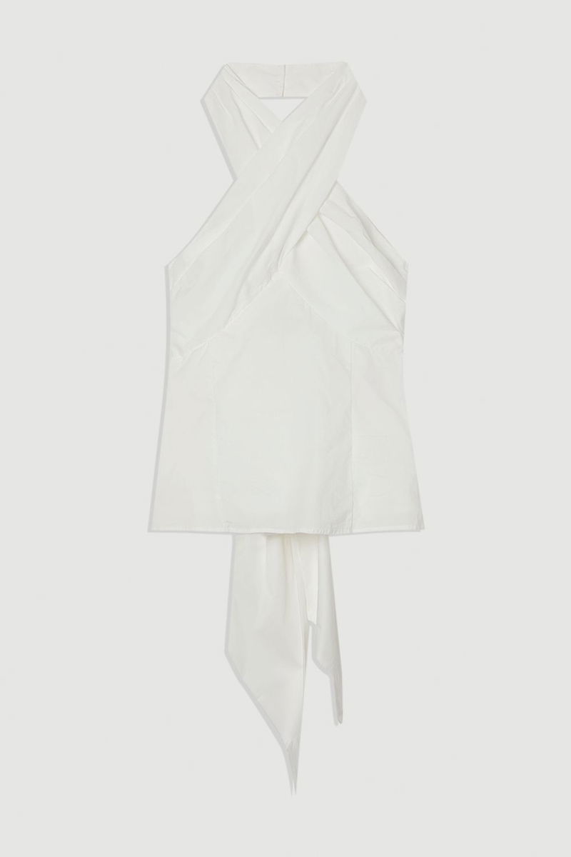 Cotton Poplin Cross Front Halter Neck Blouse With Bow Detail