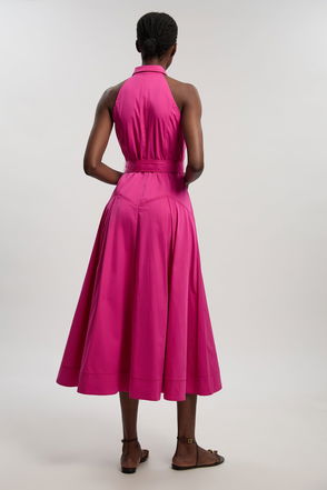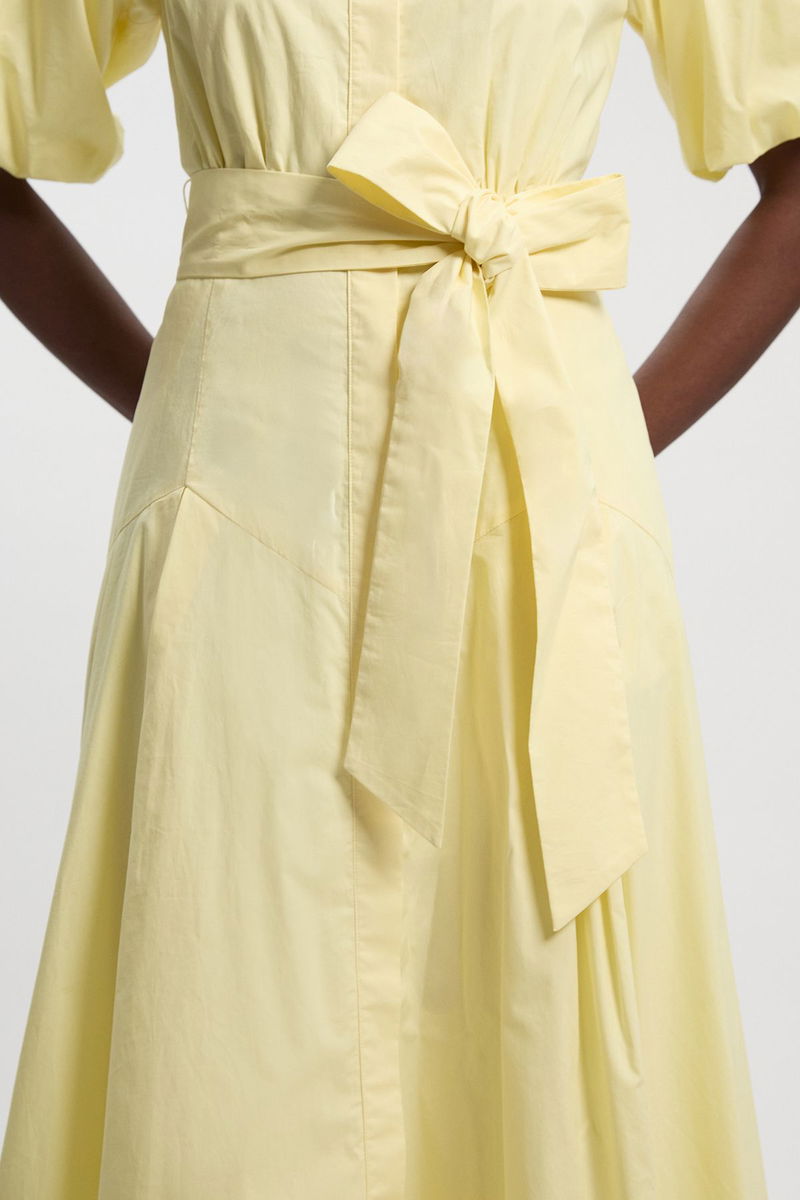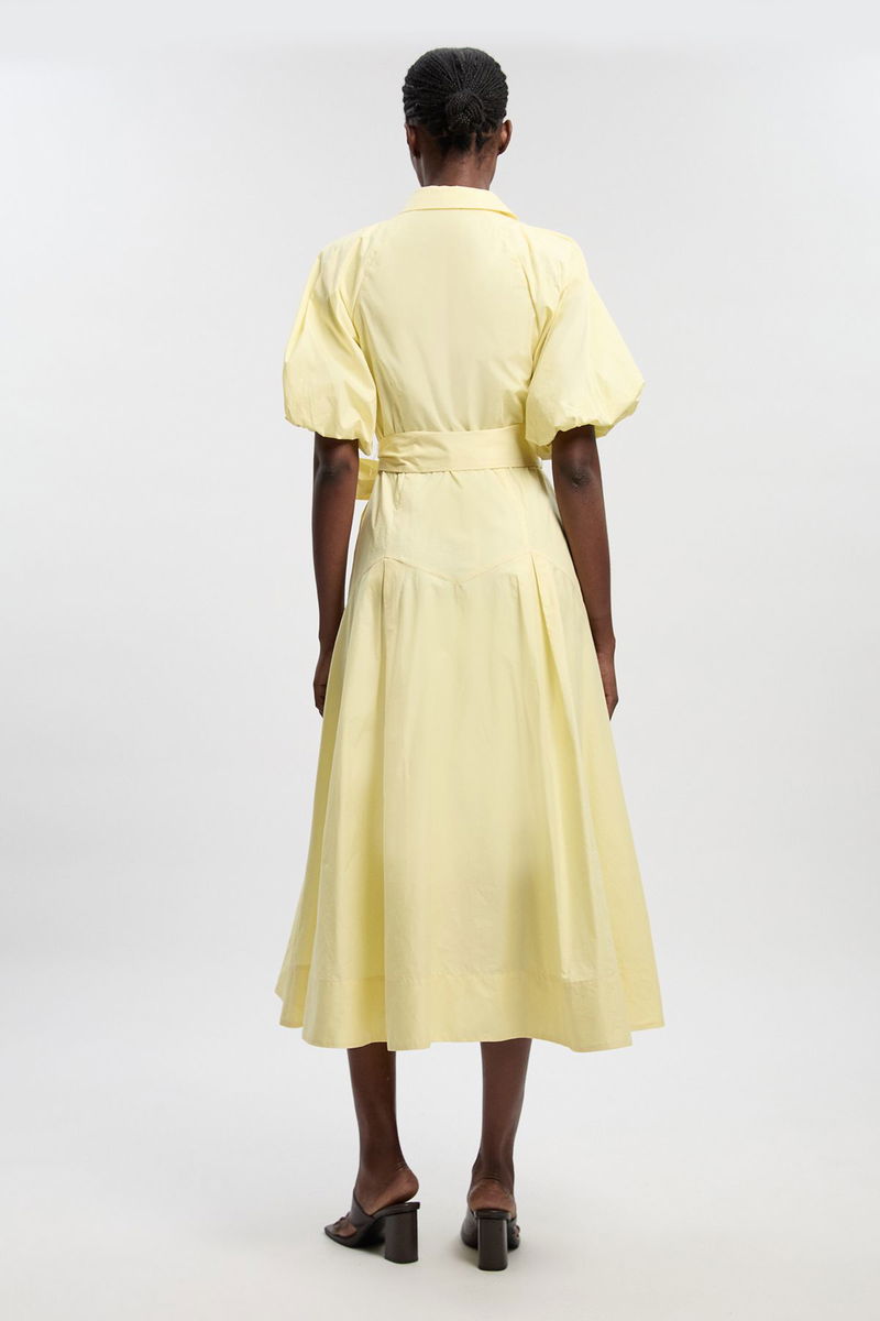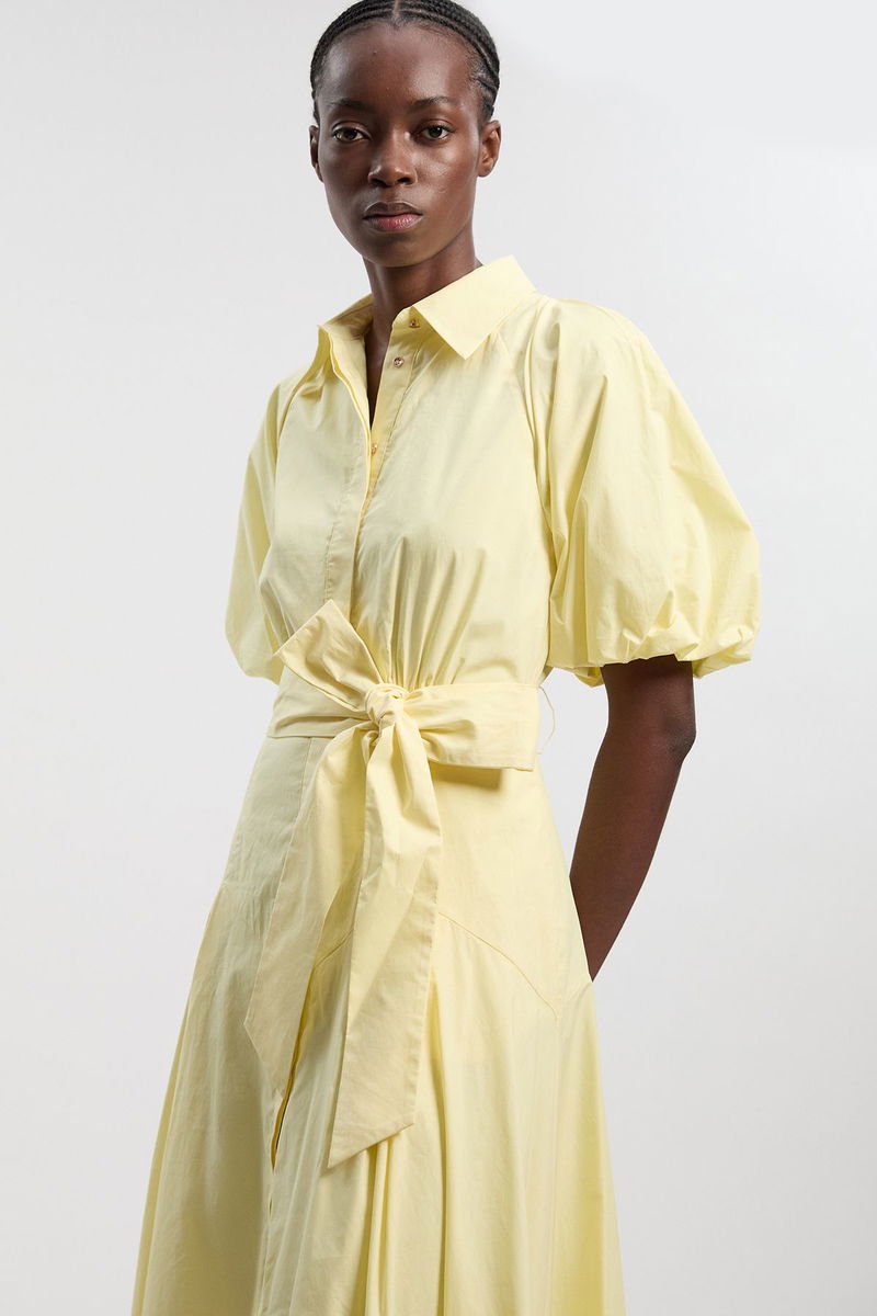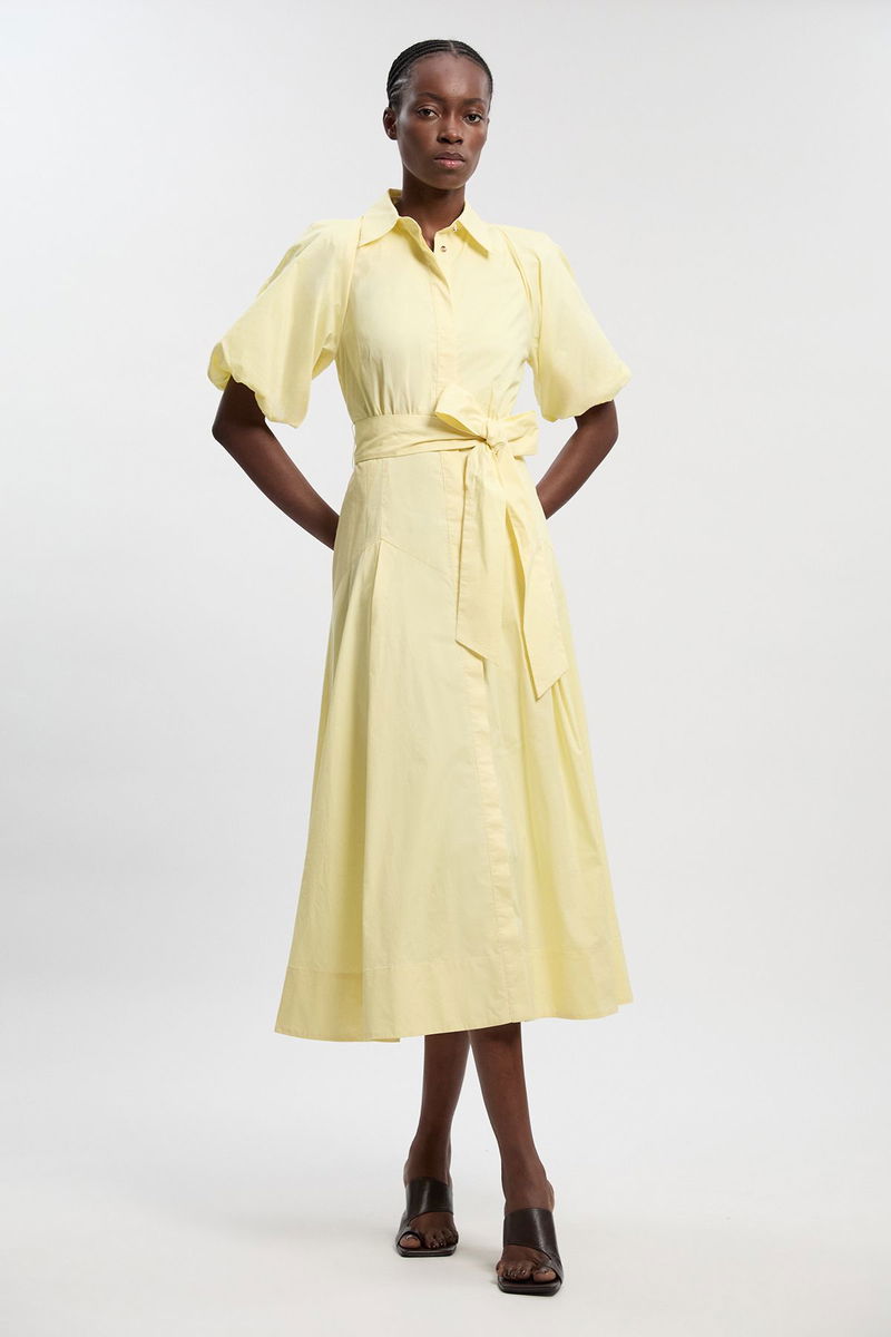 Cotton Puff Sleeve Woven Midi Shirt Dress With Dropped Waist Detail