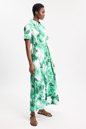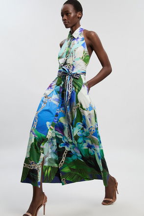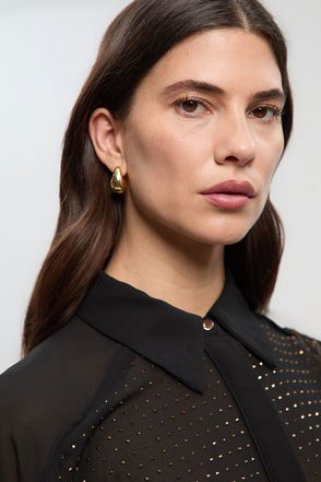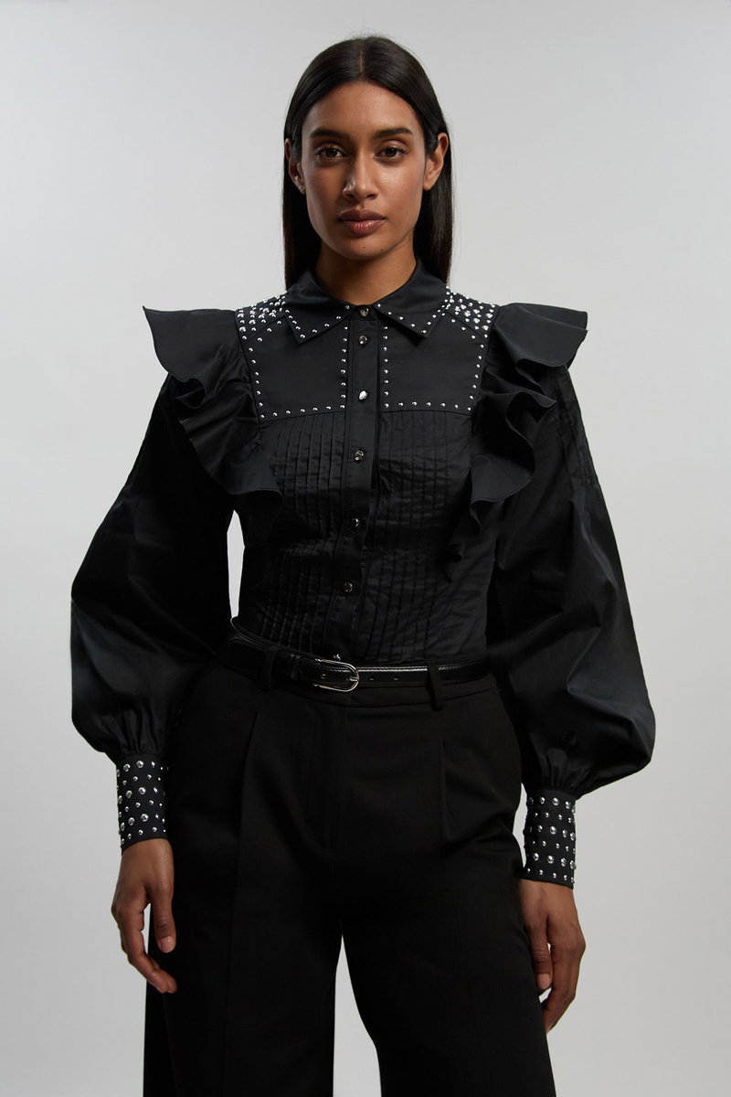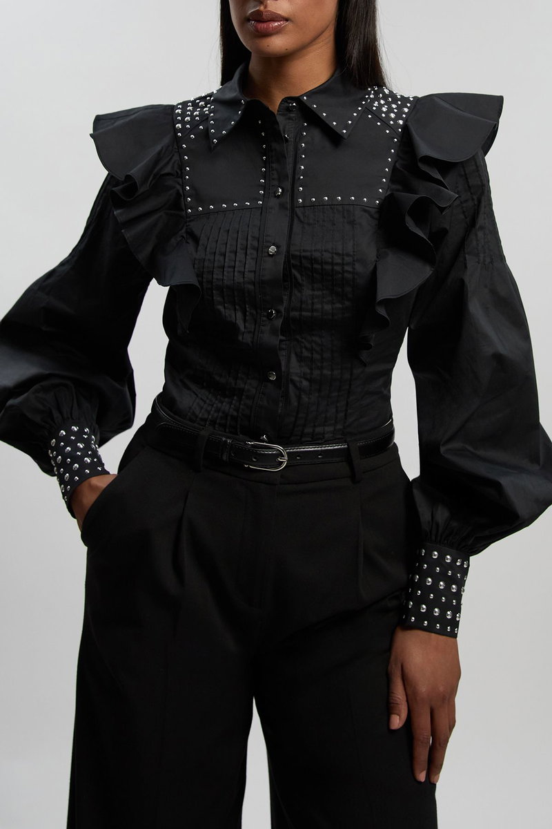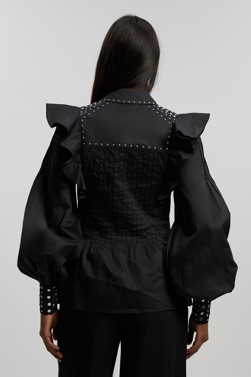 Cotton Sateen Drama Sleeve Studded Woven Maxi Shirt