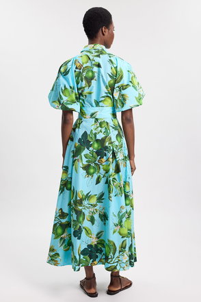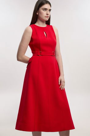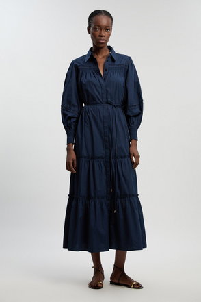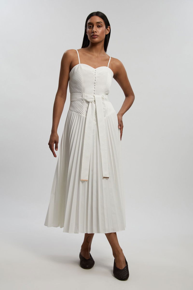 Cotton Top Stitch Dropped Waist Woven Strappy Midi Dress