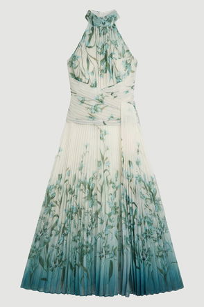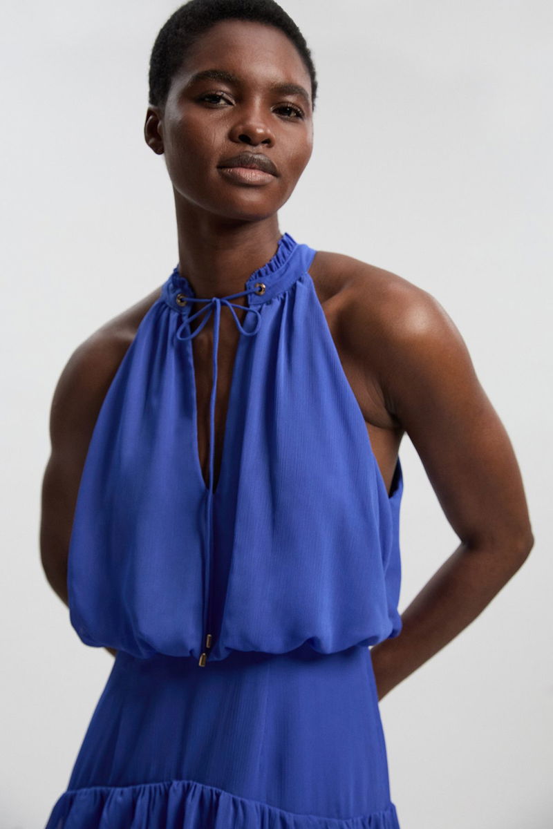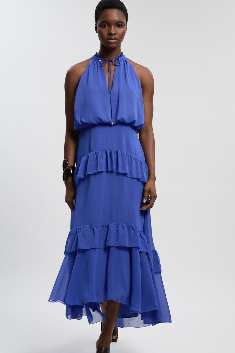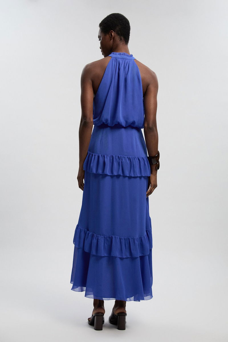 Crinkle Chiffon Halterneck Woven Maxi Dress