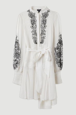 Cutwork Embroidered Ruffle Woven Mini Dress.