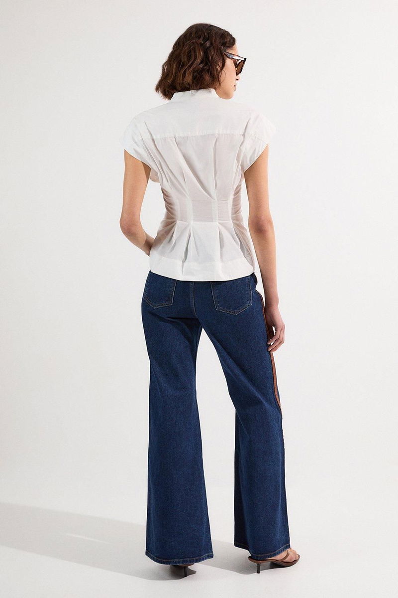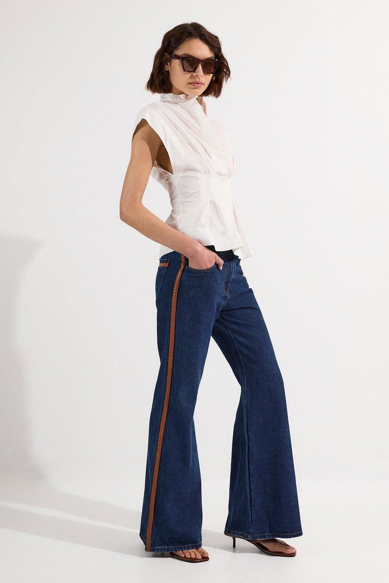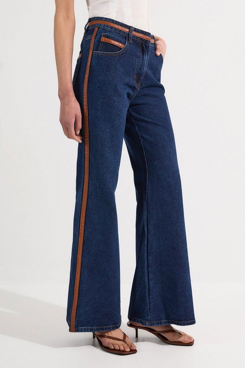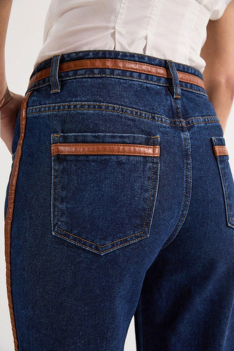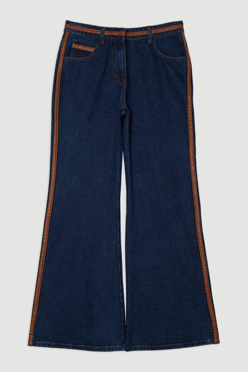 Denim & Faux Leather Tipped Side Skinny Flare Jean
