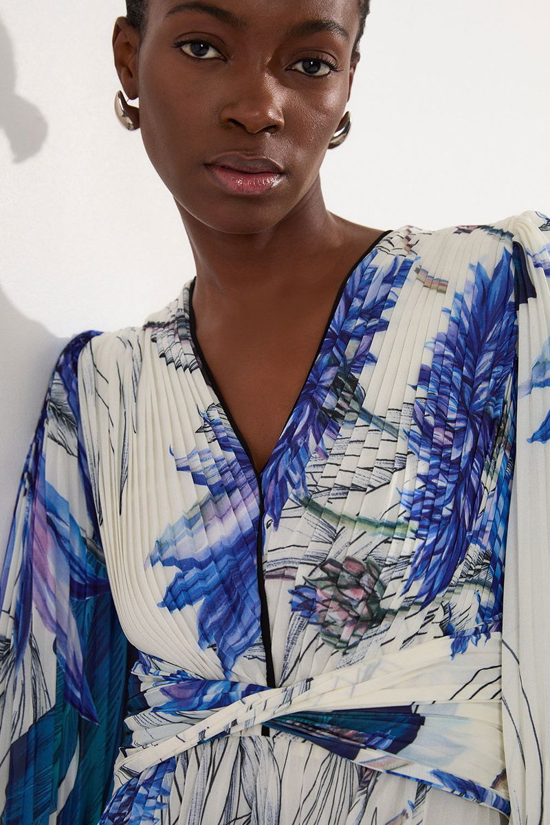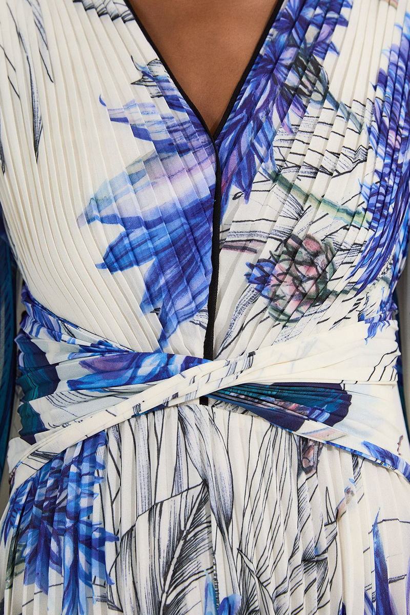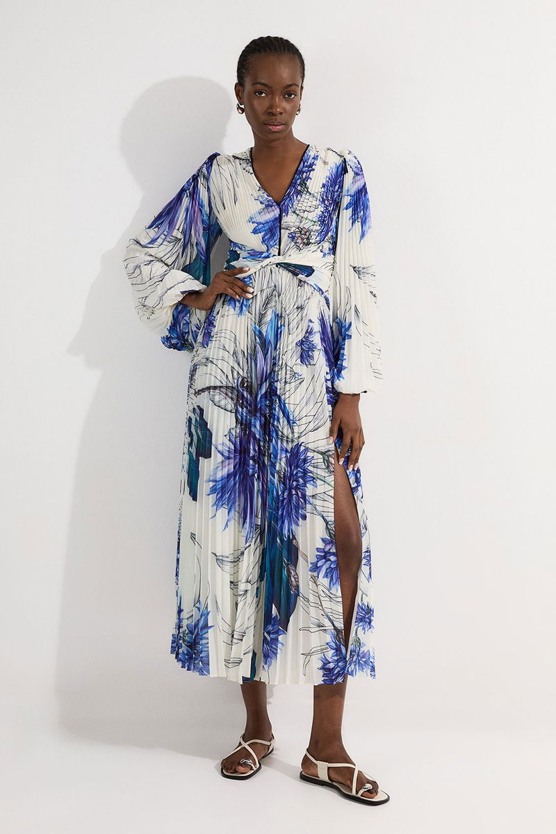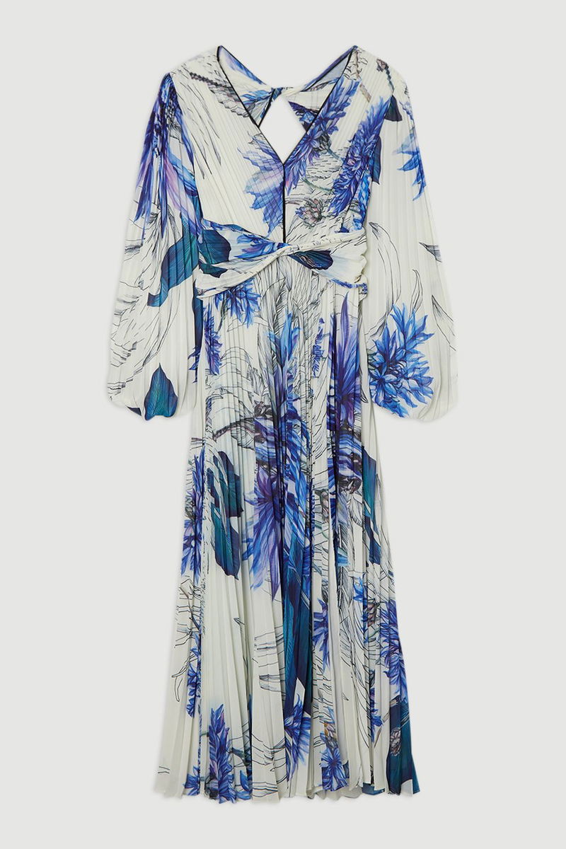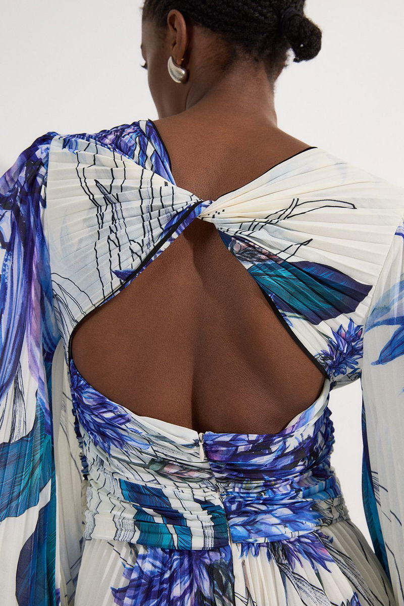 Floral Balloon Sleeve Pleated Crinkle Cut Out Woven Maxi Dress