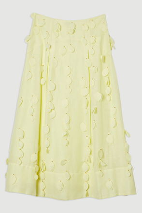 This Karen Millen floral maxi skirt combines timeless elegance with contemporary styling. The high-waisted design creates a flattering silhouette while the linen-viscose blend offers a natural drape with just the right amount of structure. Style with a simple camisole and flat sandals for casual daytime outings, or pair with the matching top for a coordinated summer ensemble. The versatile nature of this piece makes it ideal for garden parties, weekend brunches or seaside holidays. For cooler evenings, layer with a lightweight denim jacket and trainers for an effortlessly stylish look. The generous length works with both heeled and flat footwear, making this skirt a versatile addition to your warm-weather wardrobe that can be dressed up or down depending on the occasion.