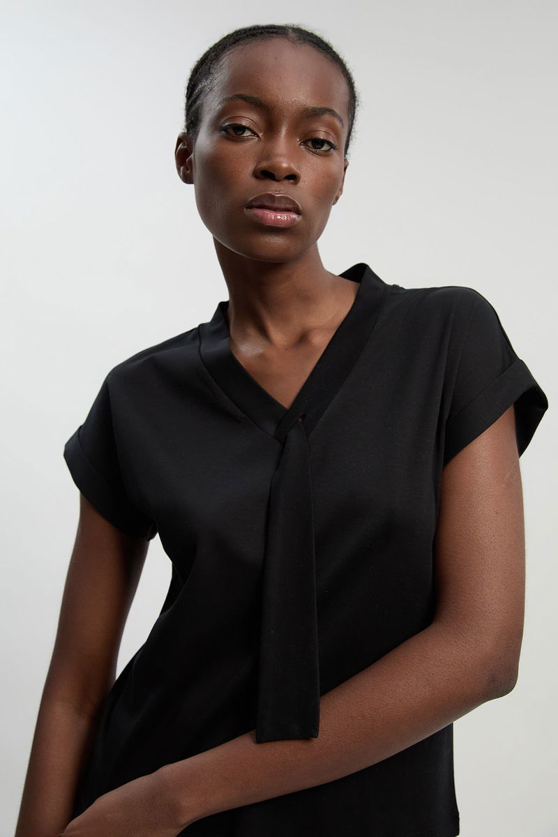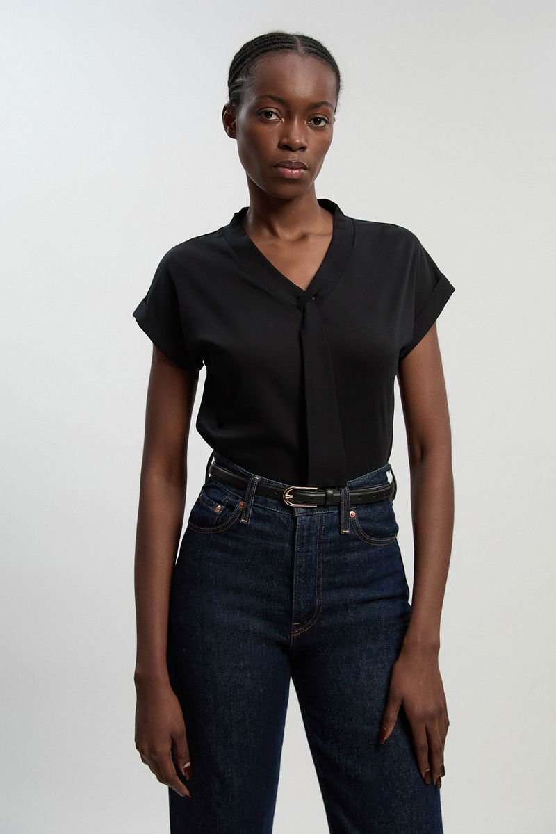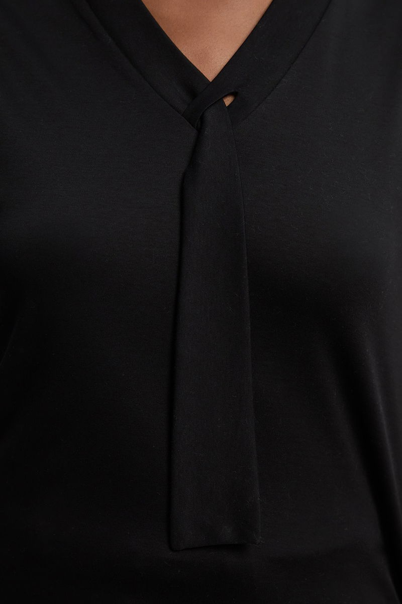 Jersey V Neck Tie Detail T - Shirt