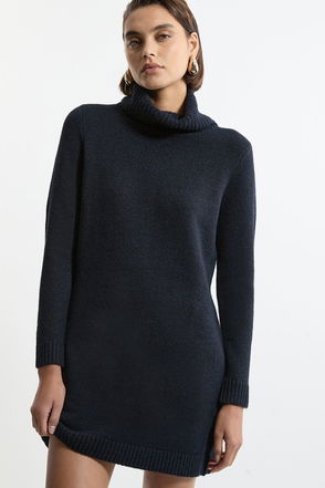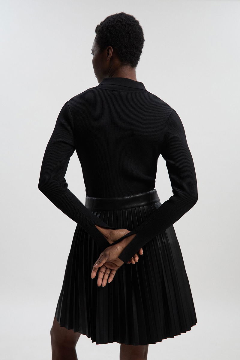 Knitted Zip Neck Pu Mix Pleated Mini Dress