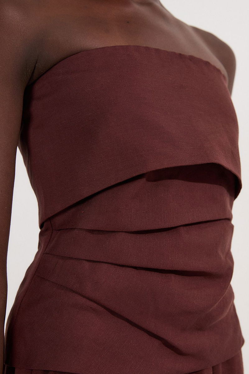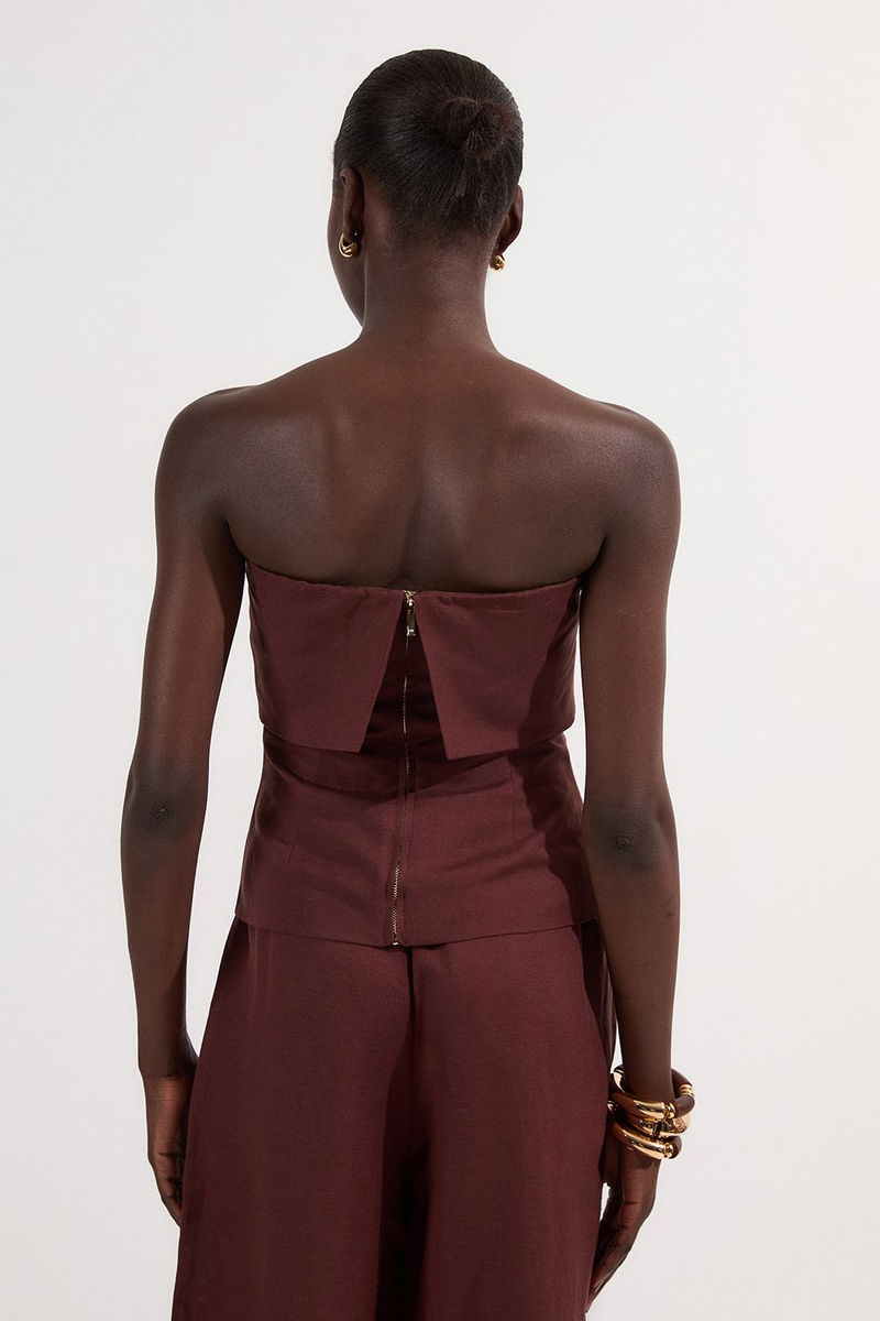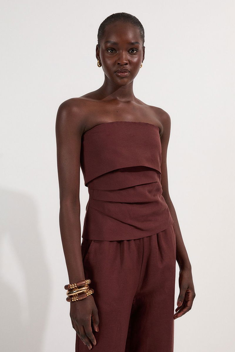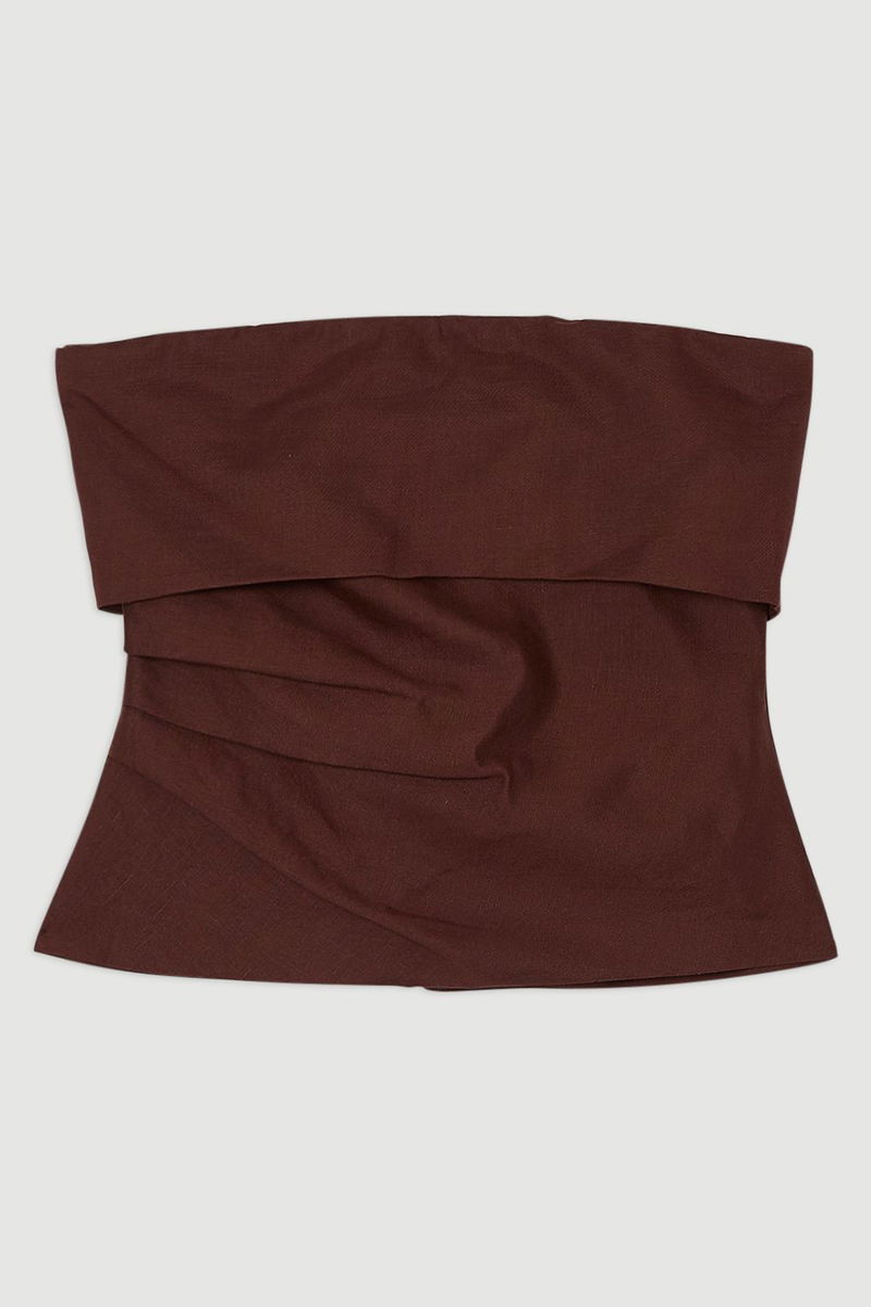 Linen Viscose Woven Bandeau Top With Ruched Side Detail