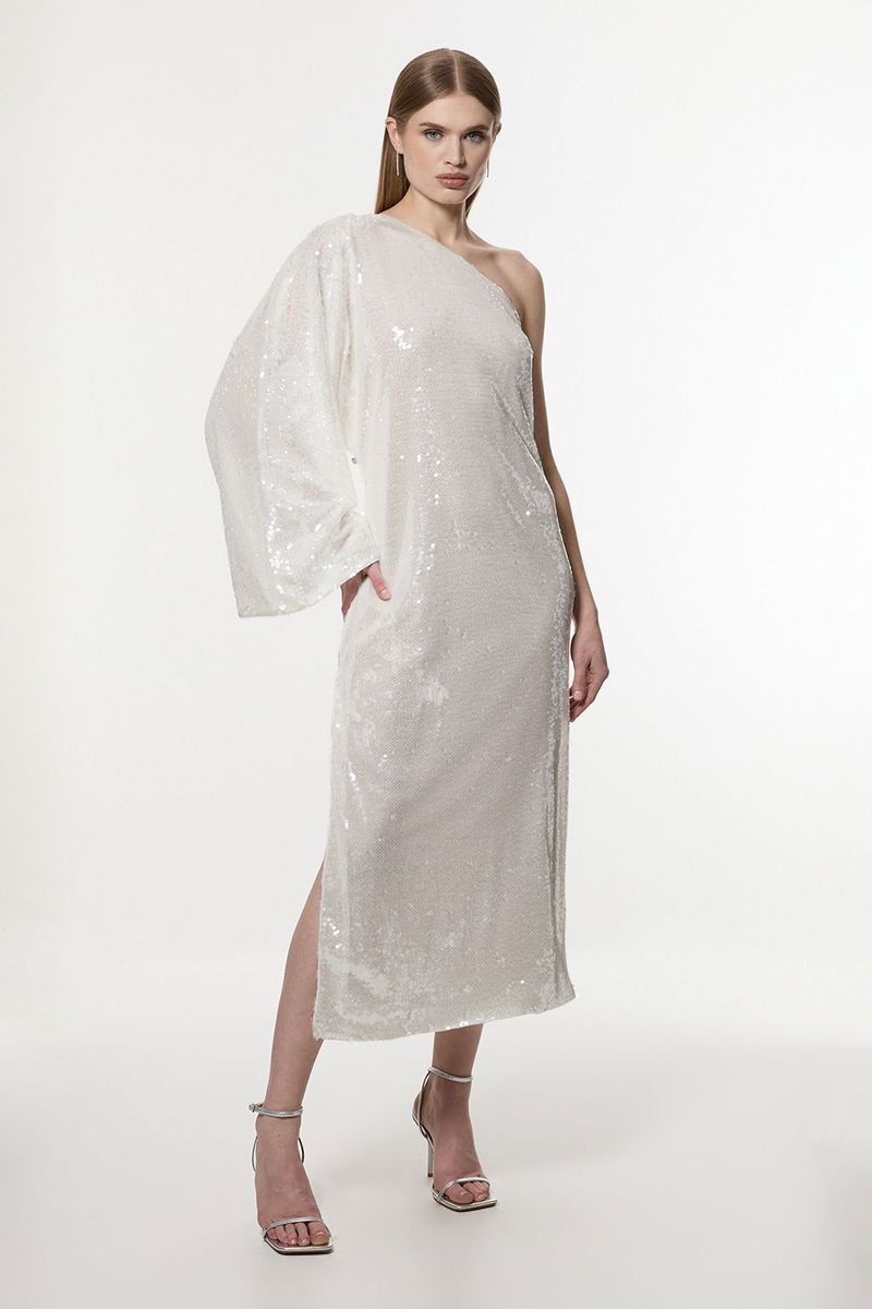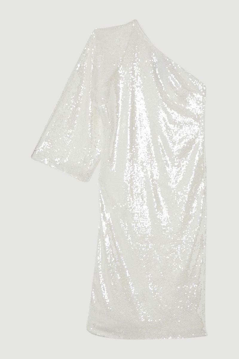 Liquid Shine One Shoulder Woven Sequin Dress