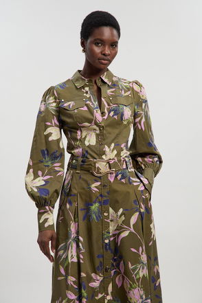 Mirror Print Silk Cotton Button Detail Woven Blouse