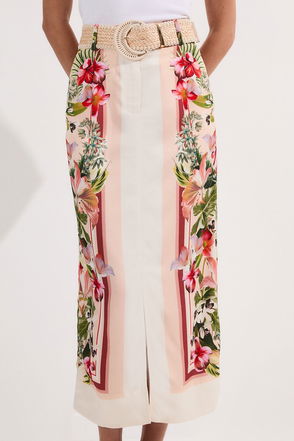 This Karen Millen Tall woven shirt showcases a captivating mirrored floral print that demands attention. The relaxed, loose-fitting silhouette creates a laid-back yet refined aesthetic, whilst the contrasting striped trim along the collar and cuffs adds a sporty, contemporary edge.