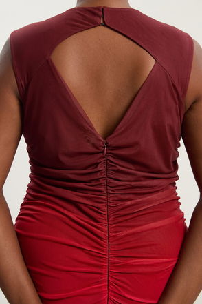Ombre Gauged Jersey Sleeveless Mesh Maxi Dress.