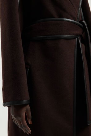 Petite Brushed Wool Pu Trim Belted Tailored Double Breasted Midi Coat.
