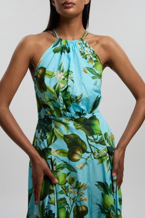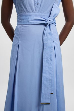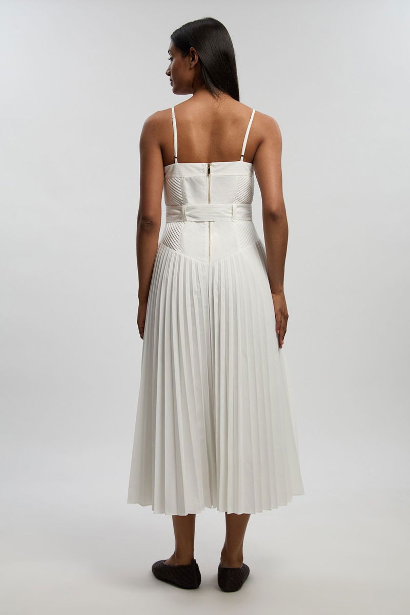 Petite Cotton Top Stitch Dropped Waist Woven Strappy Midi Dress