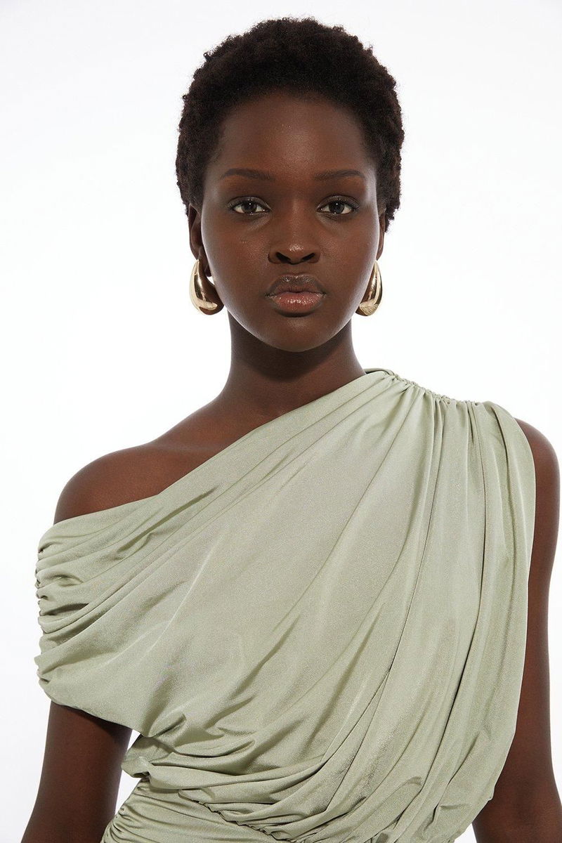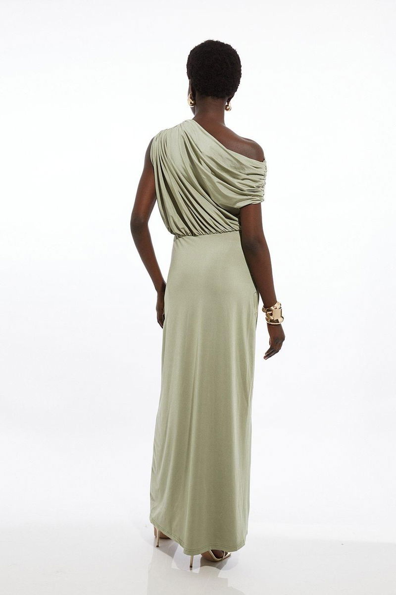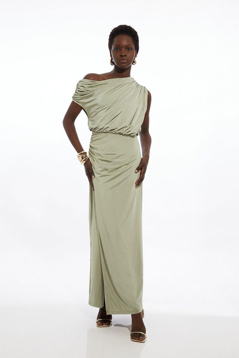 Petite Drapey Slinky Jersey Bardot Maxi Dress