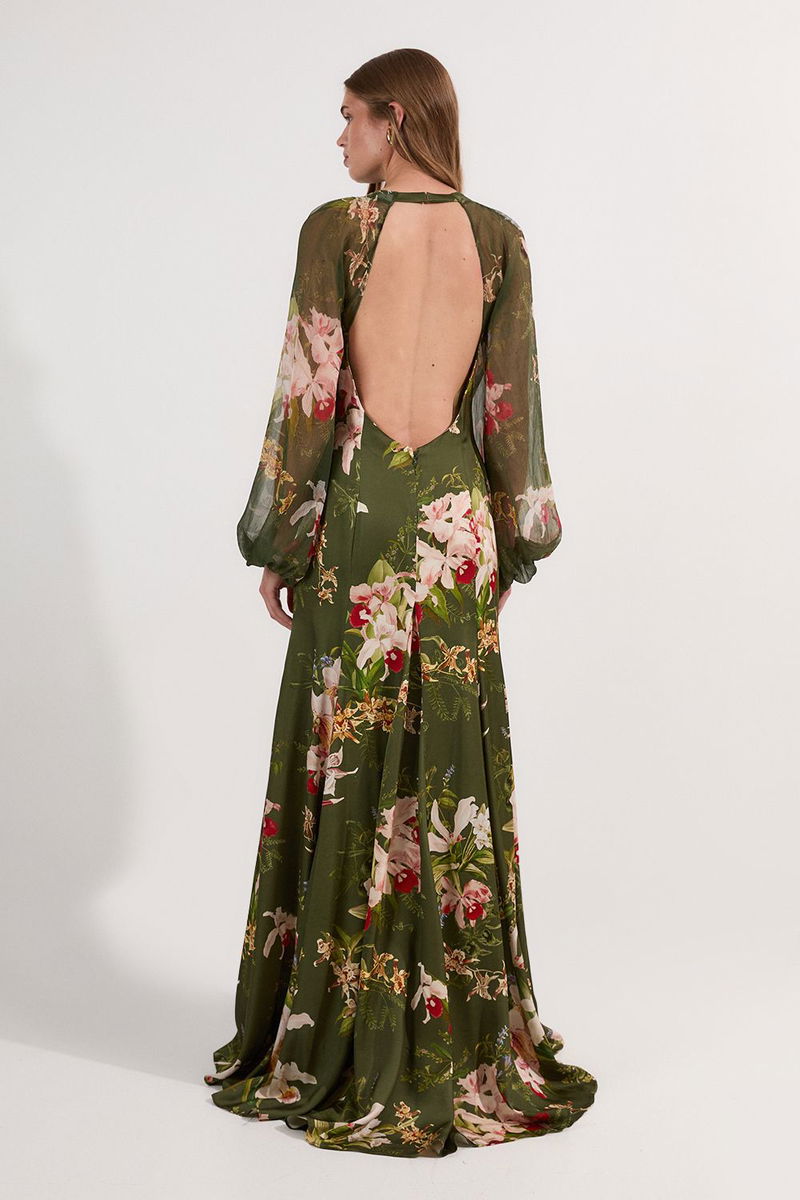 Petite Garden Floral Viscose Georgette Satin Mix Maxi Dress