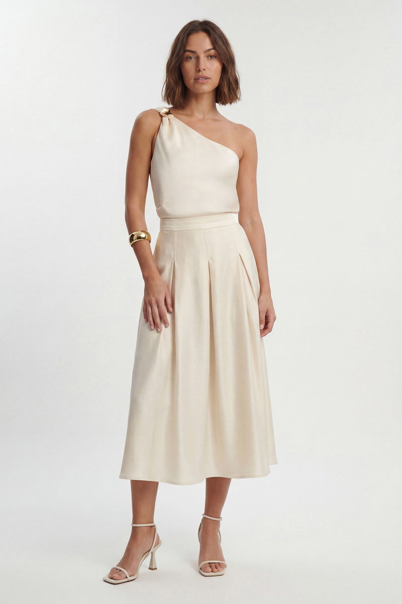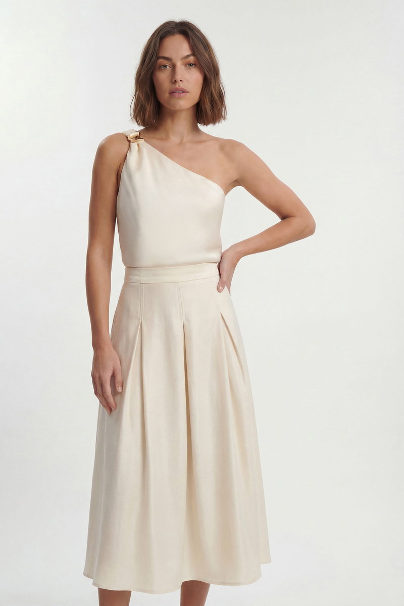 Petite Hammered Satin One Shoulder Woven Top