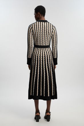 Petite Pointelle Frill Sleeve Knit Midi Dress
