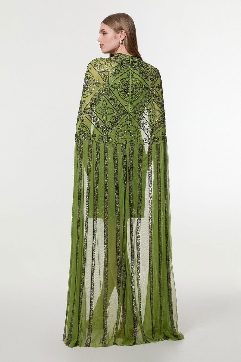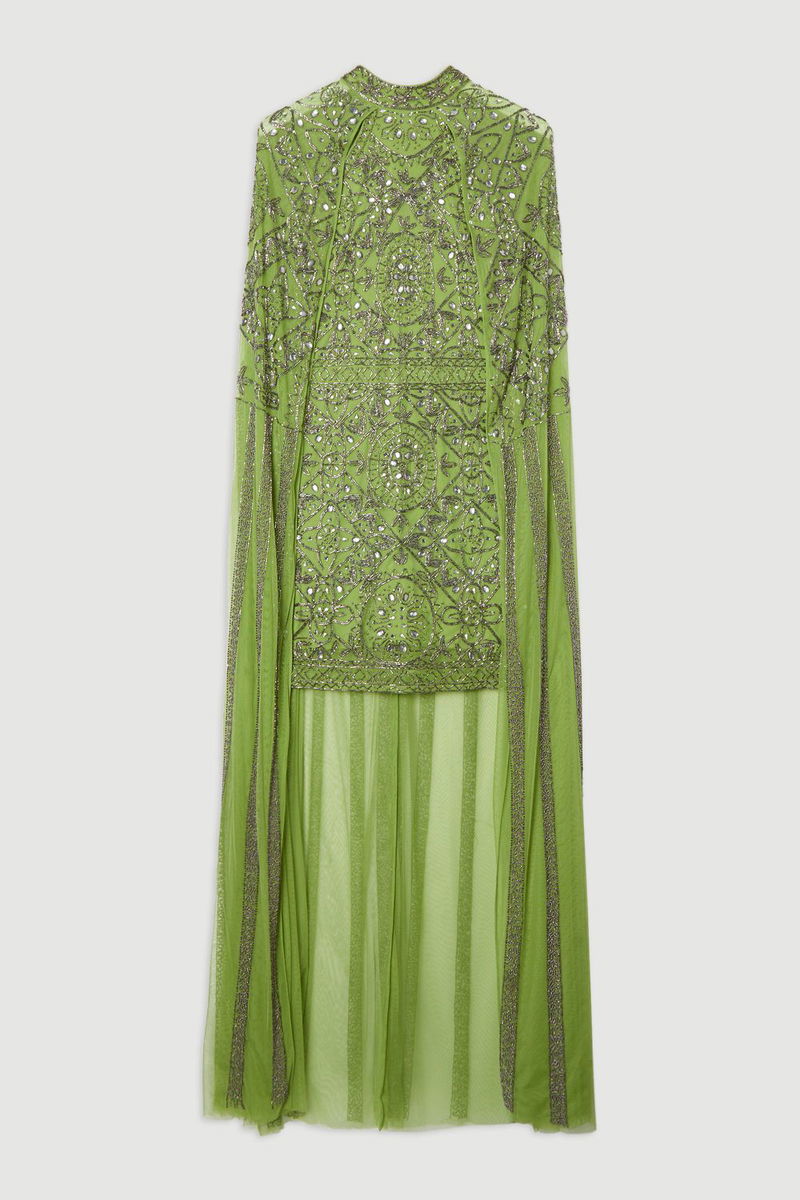 Petite Premium Beading And Embellished Cape Detail Woven Mini Dress