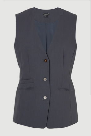 Embrace effortless chic with this Karen Millen Petite Premium Linen Viscose Pinstripe Tailored Waistcoat. Perfect for elevating your daywear ensemble, this waistcoat offers a refined touch to casual outings. Style it over a crisp white shirt and pair with dark denim jeans for a smart-casual look that's ideal for family gatherings or weekend brunches. The pinstripe pattern adds a subtle sophistication, while the tailored fit ensures a flattering silhouette. For a more relaxed approach, layer it over a simple tee and team with wide-leg trousers and trainers. The versatile nature of this piece allows for endless styling possibilities, making it a valuable addition to your wardrobe. Whether you're heading to a casual work meeting or enjoying a day out shopping, this waistcoat will keep you looking polished and put-together.