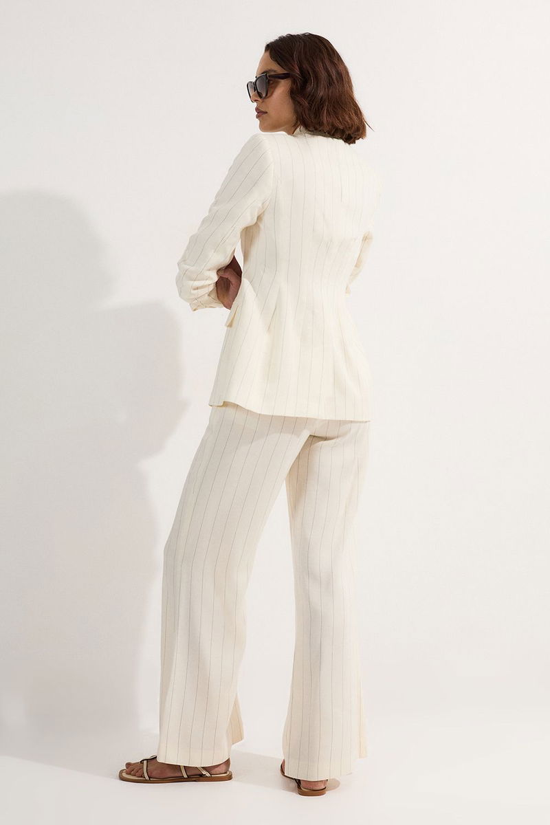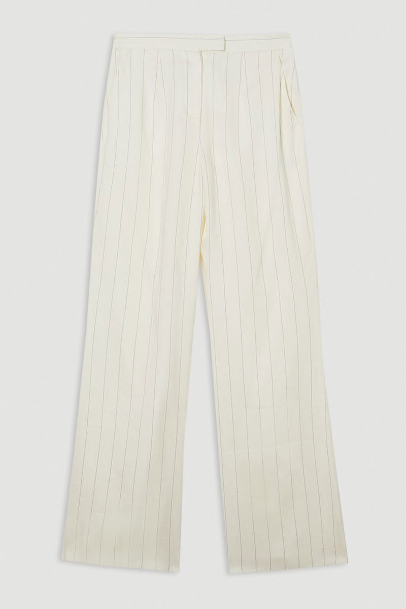 Petite Premium Linen Viscose Pinstripe Tailored Wide Leg Trouser