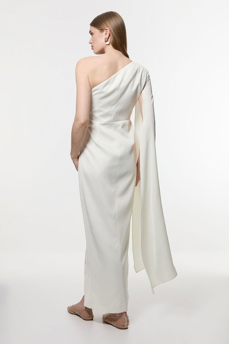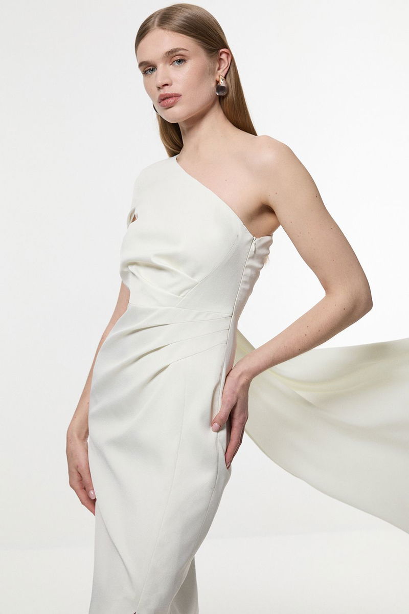 Petite Satin Drape One Shoulder Tailored Maxi Dress