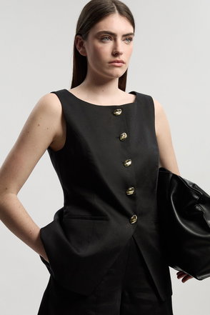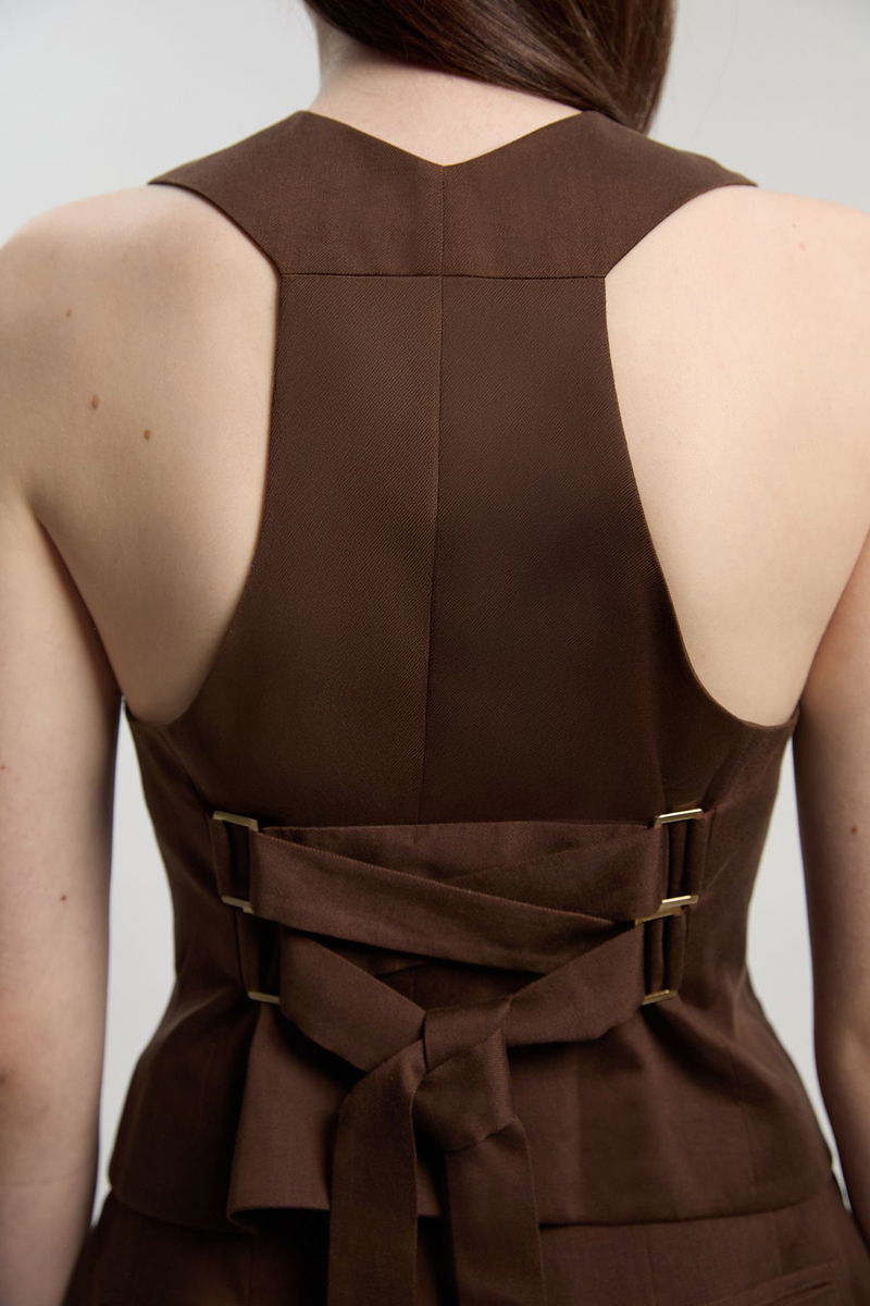 Petite Tailored Linen Corset Back Detail Waistcoat
