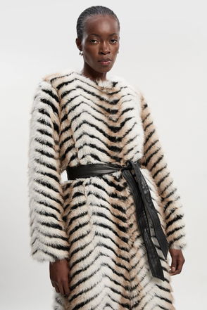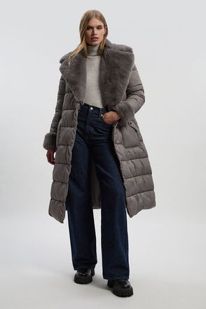 Make a sophisticated statement with this Karen Millen textured faux fur coat, designed specifically for petite frames. The full collar creates a dramatic yet refined look, whilst the belted waist cinches in to create a feminine silhouette that balances the voluminous texture. Style with slim-fit trousers and ankle boots for daytime polish, as seen on our model, or pair with straight-leg jeans and trainers for a contemporary casual approach. Perfect for family gatherings, weekend brunches or city shopping trips, this coat adds a touch of glamour to everyday occasions. The regular fit allows for comfortable layering over knitwear during colder months, making this a versatile addition to your autumn and winter wardrobe that combines practicality with Karen Millen's signature contemporary elegance.