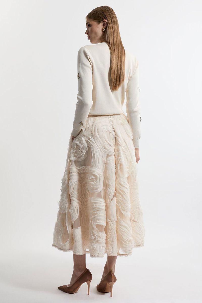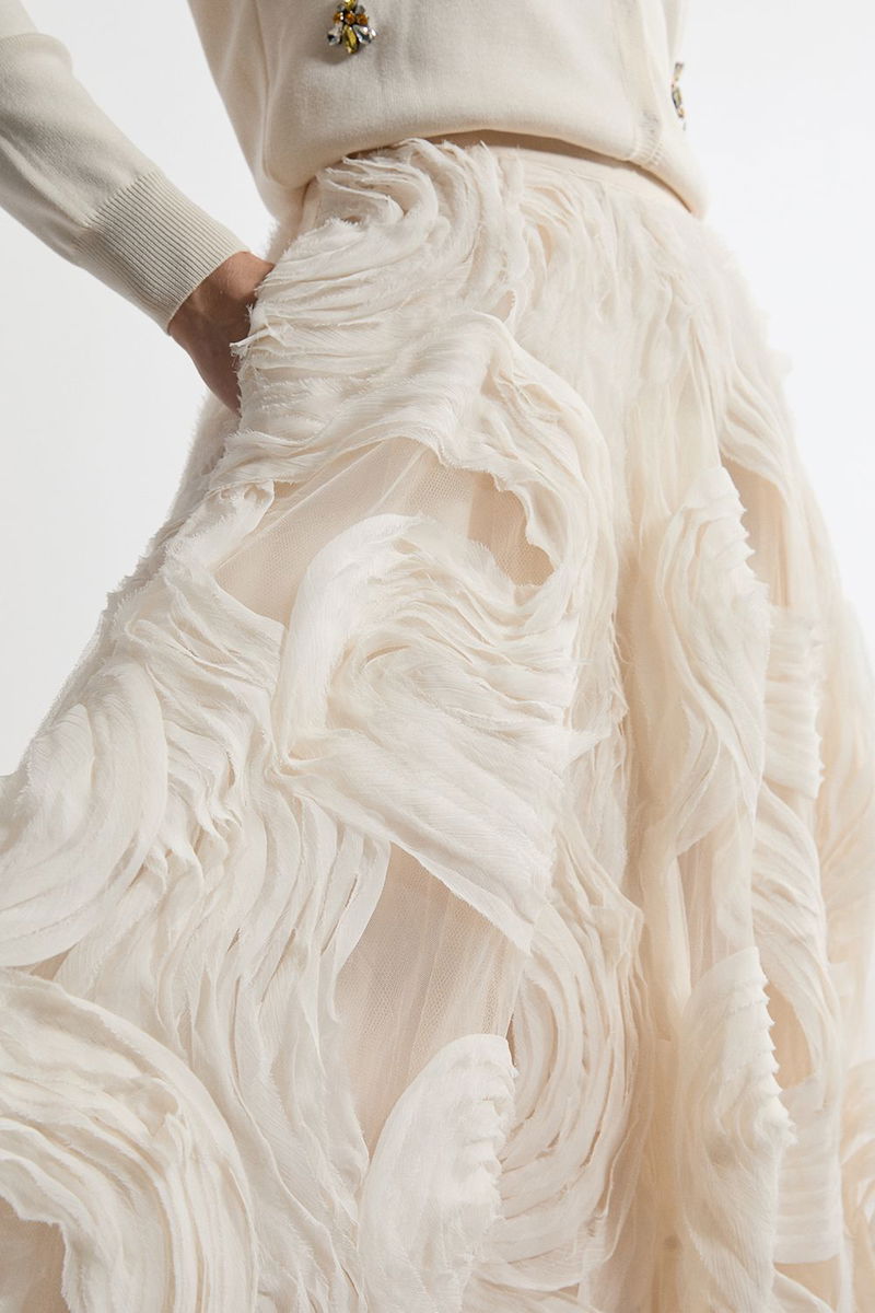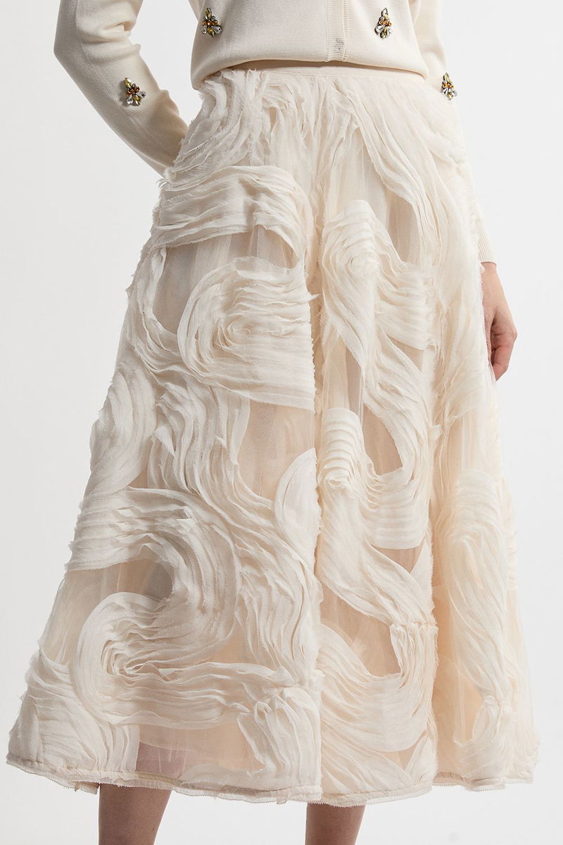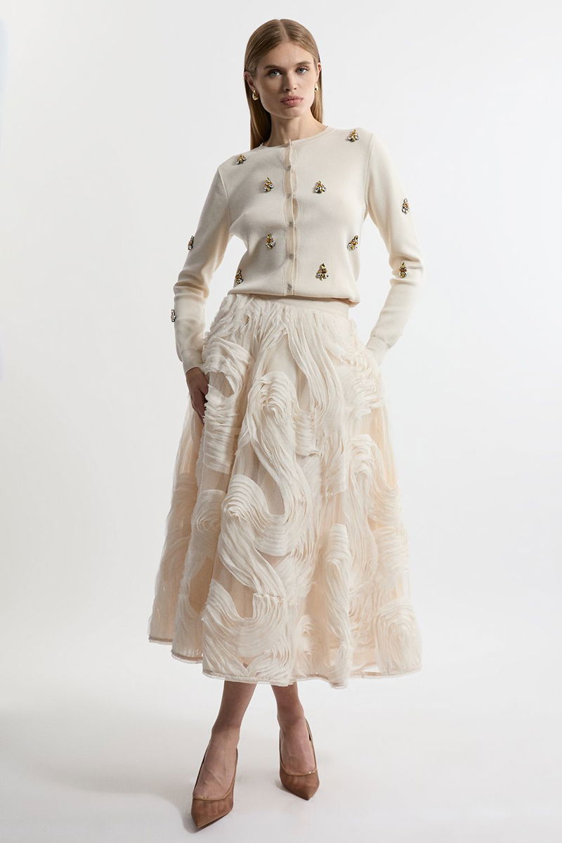 Feel formal in our petite prom skirt, with a universally flattering flared silhouette, and swirled, textured embroidery which brings an elevated level of intrigue. Style this piece with a blouse or corset top and dancefloor-friendly block heels.