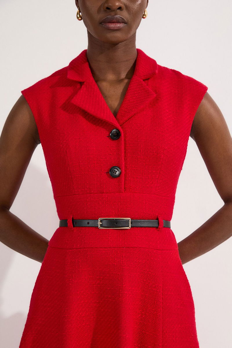 Petite Textured Tweed Belted Full Skirted Midi Dress