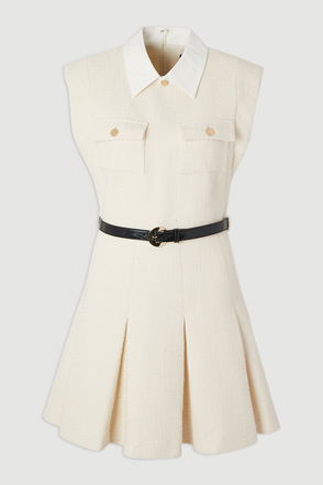 Petite Textured Tweed Belted Tailored Mini Dress.