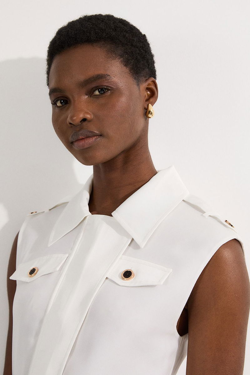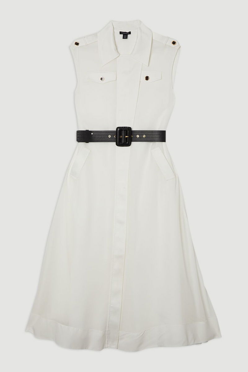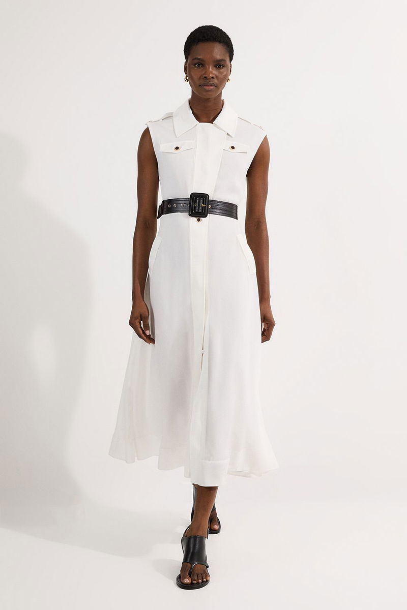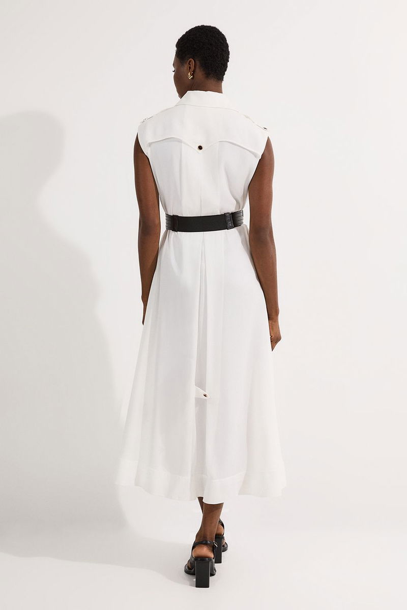 Petite Viscose Georgette Woven Trench Sleeveless Midi Dress