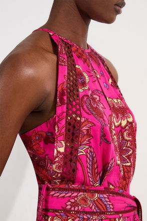 Petite Voile Floral Border Print Playsuit With Ladder Lace Trim.