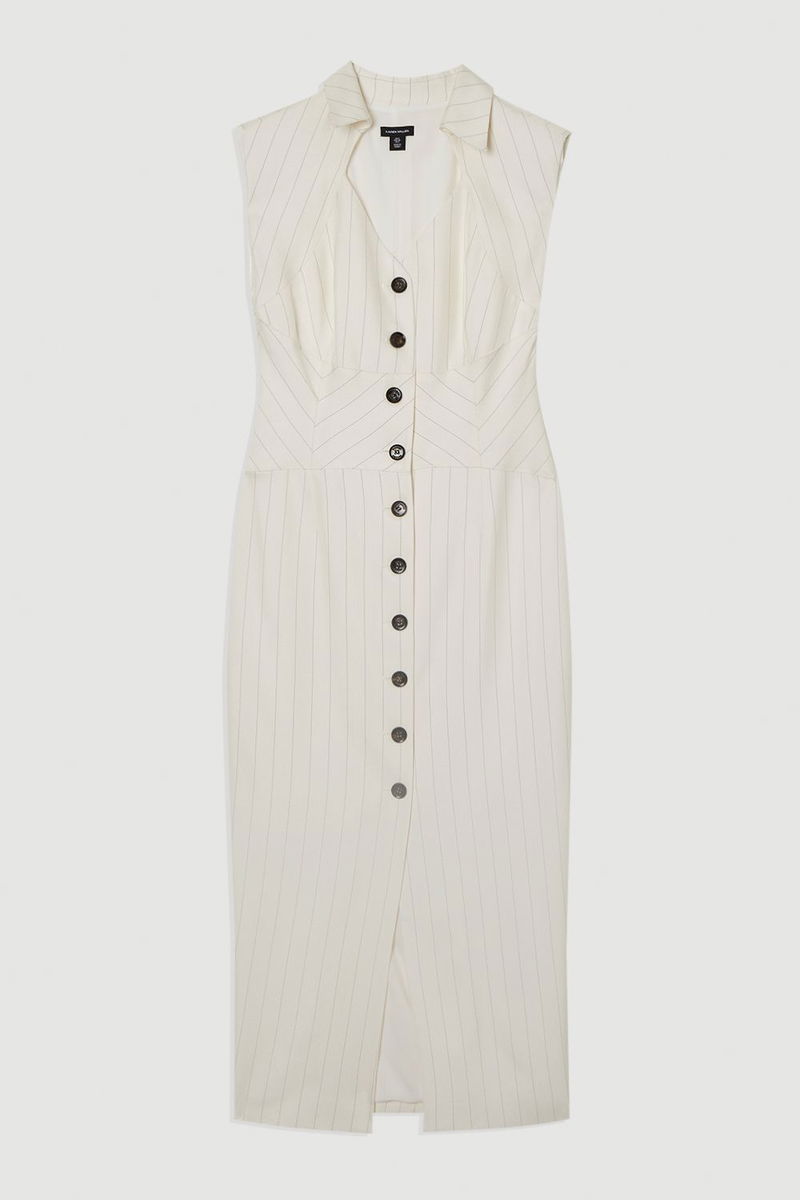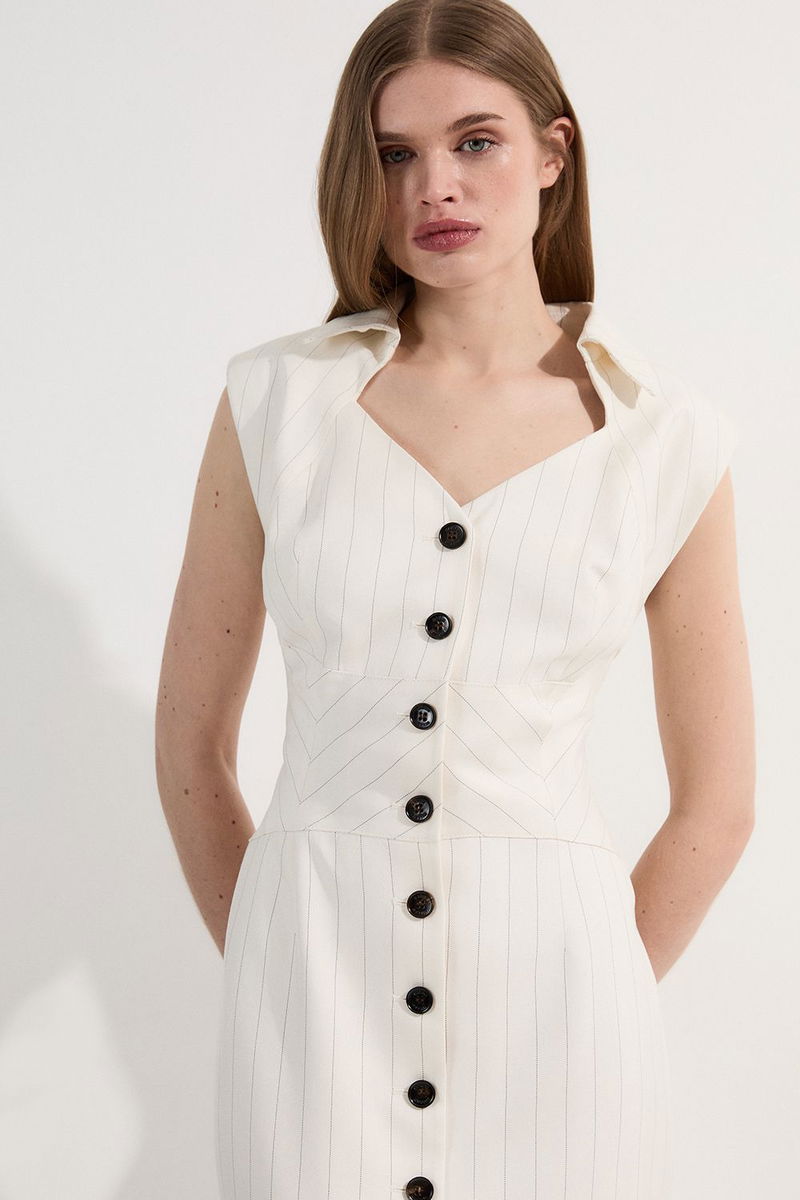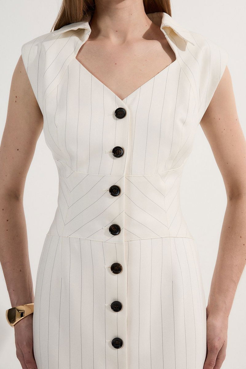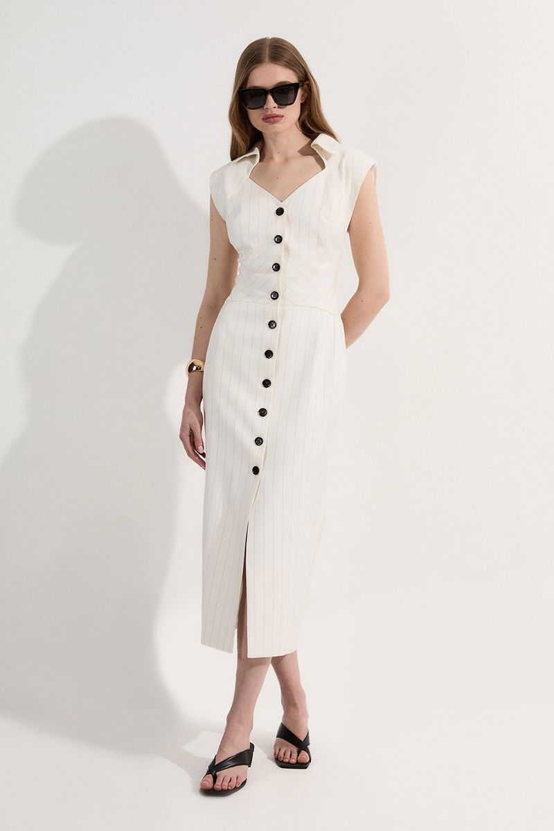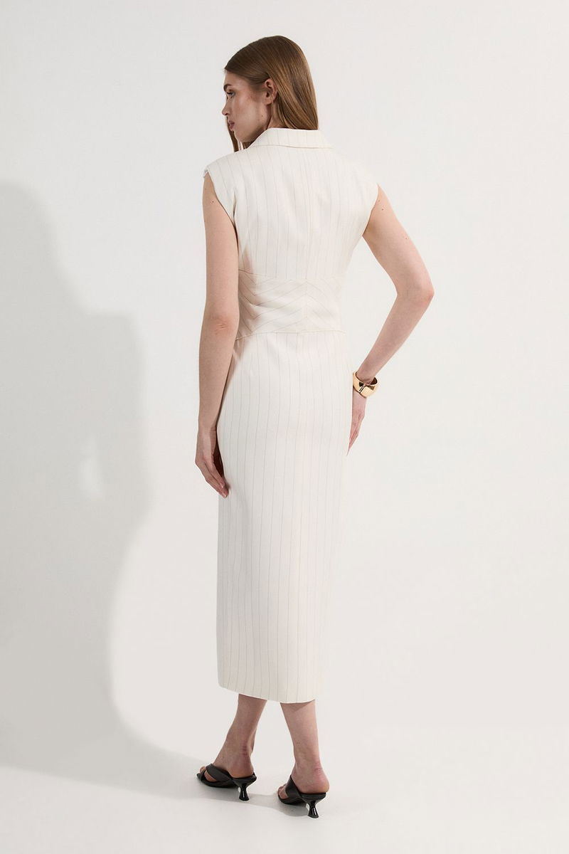 Pinstripe Corseted Tailored Pencil Midi Dress