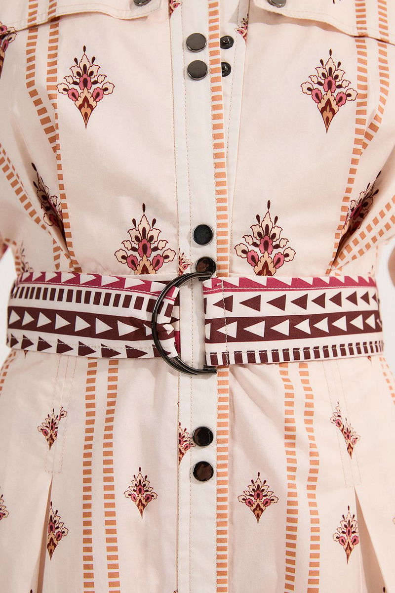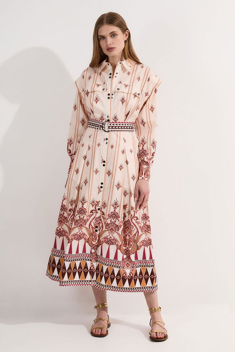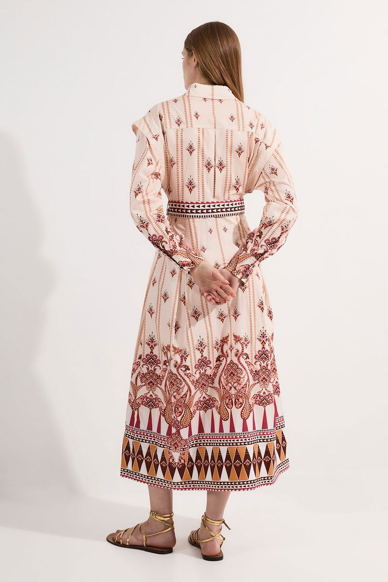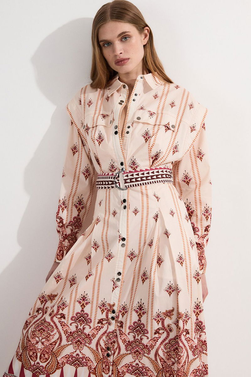 Placed Print Cotton Sateen Shirt Dress