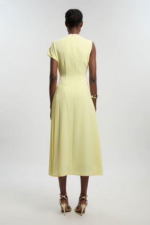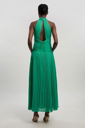 This Karen Millen pleated midi dress embodies refined craftsmanship with its intricate twist front detail and meticulous pleating throughout. The halter neckline creates an elegant frame for the décolletage, while the cinched waist design enhances your natural silhouette. Style with metallic strappy heels as shown for evening soirées, or dress down with a structured blazer and pointed flats for sophisticated daywear. The flowing midi length makes this piece versatile for garden parties, gallery openings or upscale dining experiences. This dress demonstrates expert tailoring that celebrates feminine contours whilst maintaining a contemporary edge-a signature hallmark of Karen Millen's dedication to creating pieces that transition effortlessly from day to evening whilst maintaining an air of polished sophistication.