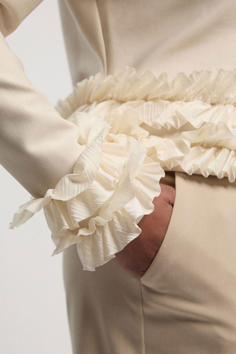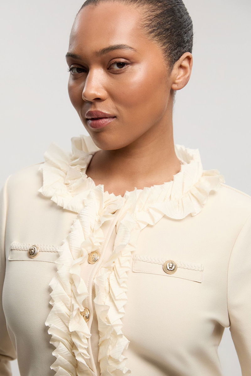 Plus Size Figure Form Bandage Knit Jacket With Woven Ruffle Trim