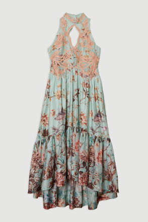 Make a grand entrance at your next formal event with this captivating maxi cape from Karen Millen. The woven fabric serves as a canvas for exquisite floral appliques and sparkling crystal embellishments, creating a mesmerising visual effect. The high neckline and floor-length design lend a regal air to your ensemble, perfect for weddings, galas, or red-carpet affairs. Style this statement piece over a sleek column dress or tailored jumpsuit for maximum impact. Pair with strappy heels and minimal jewellery to let the cape take centre stage. The plus size fit ensures comfort and confidence, allowing you to shine at any occasion. This Karen Millen creation is more than just a garment; it's a work of art that transforms you into the belle of the ball.