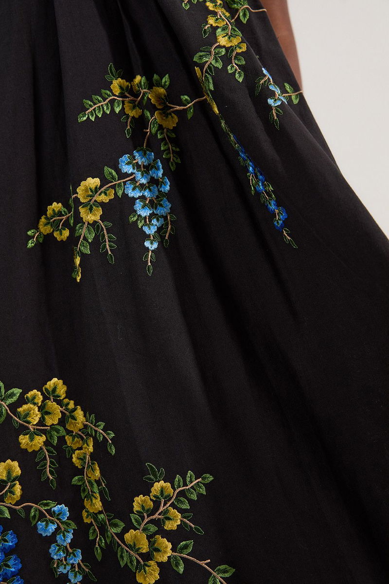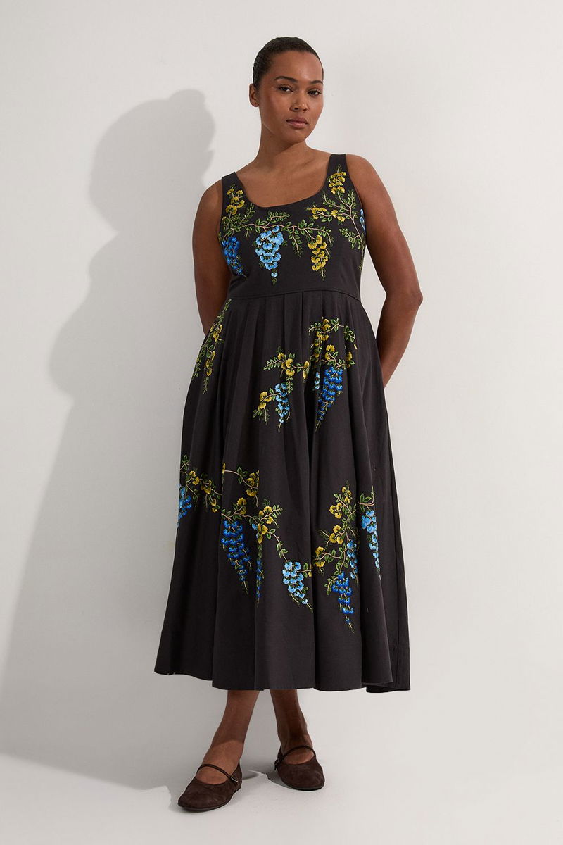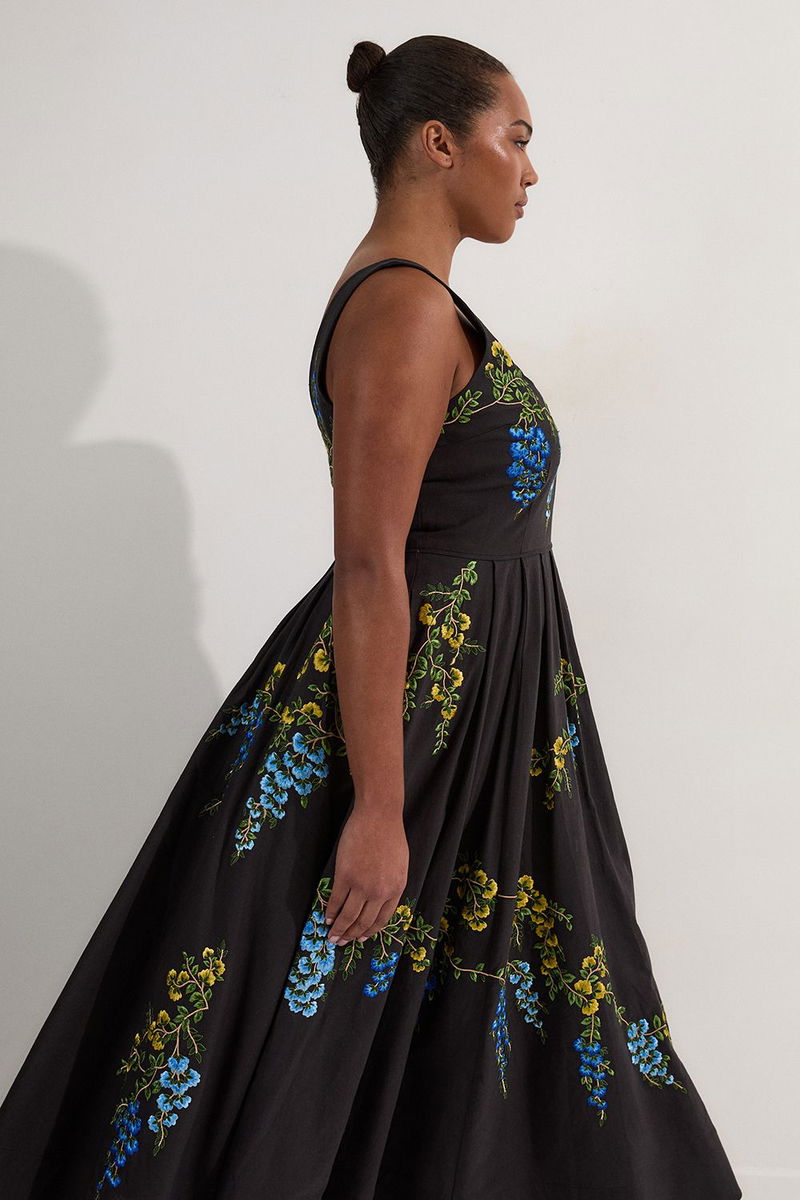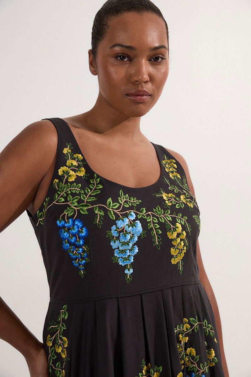 Plus Size Floral Embroidered Cotton Linen Woven Prom Dress